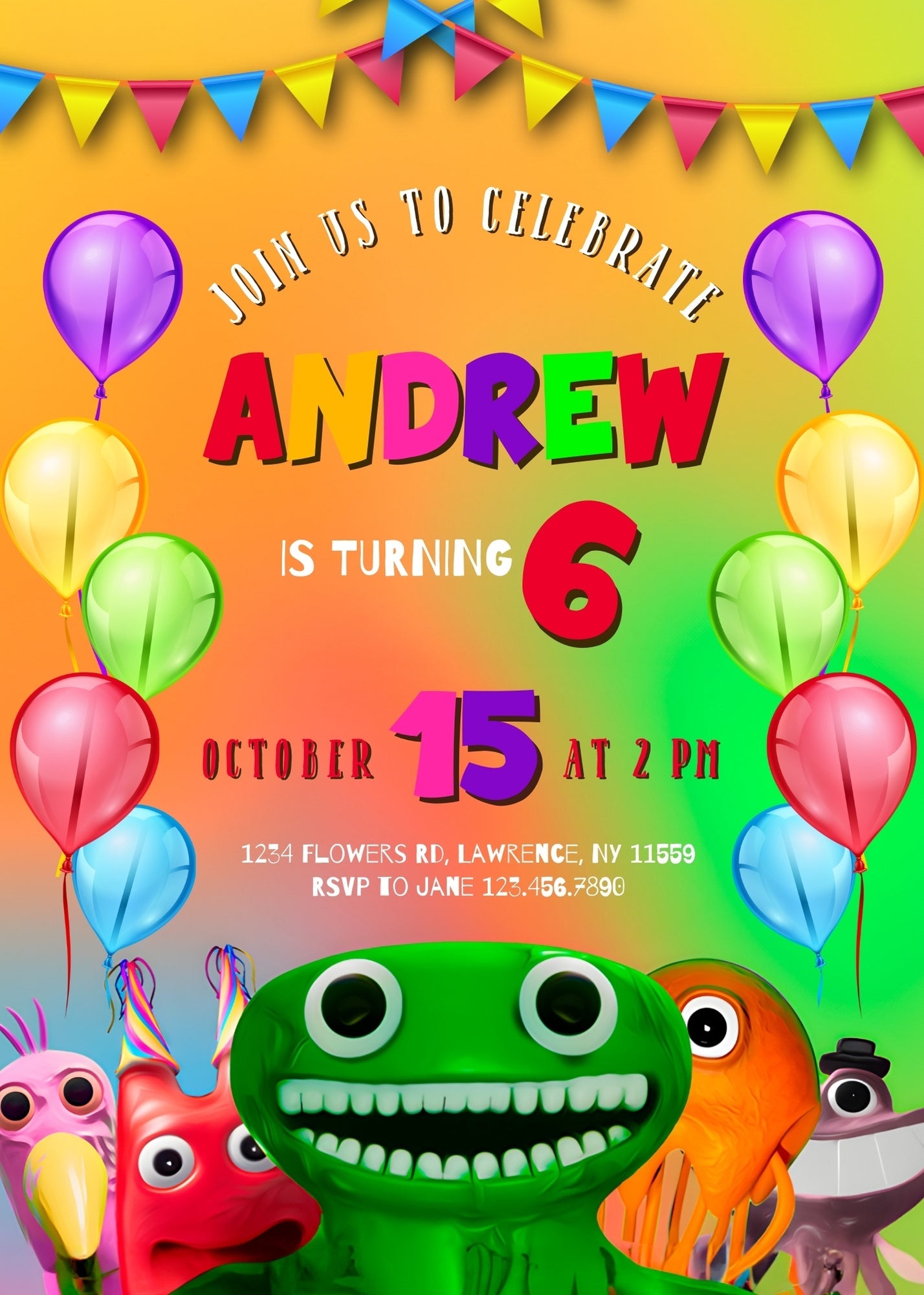 Garten of Banban Gamer customizable invitation template | Share or Print | | ZZ649
