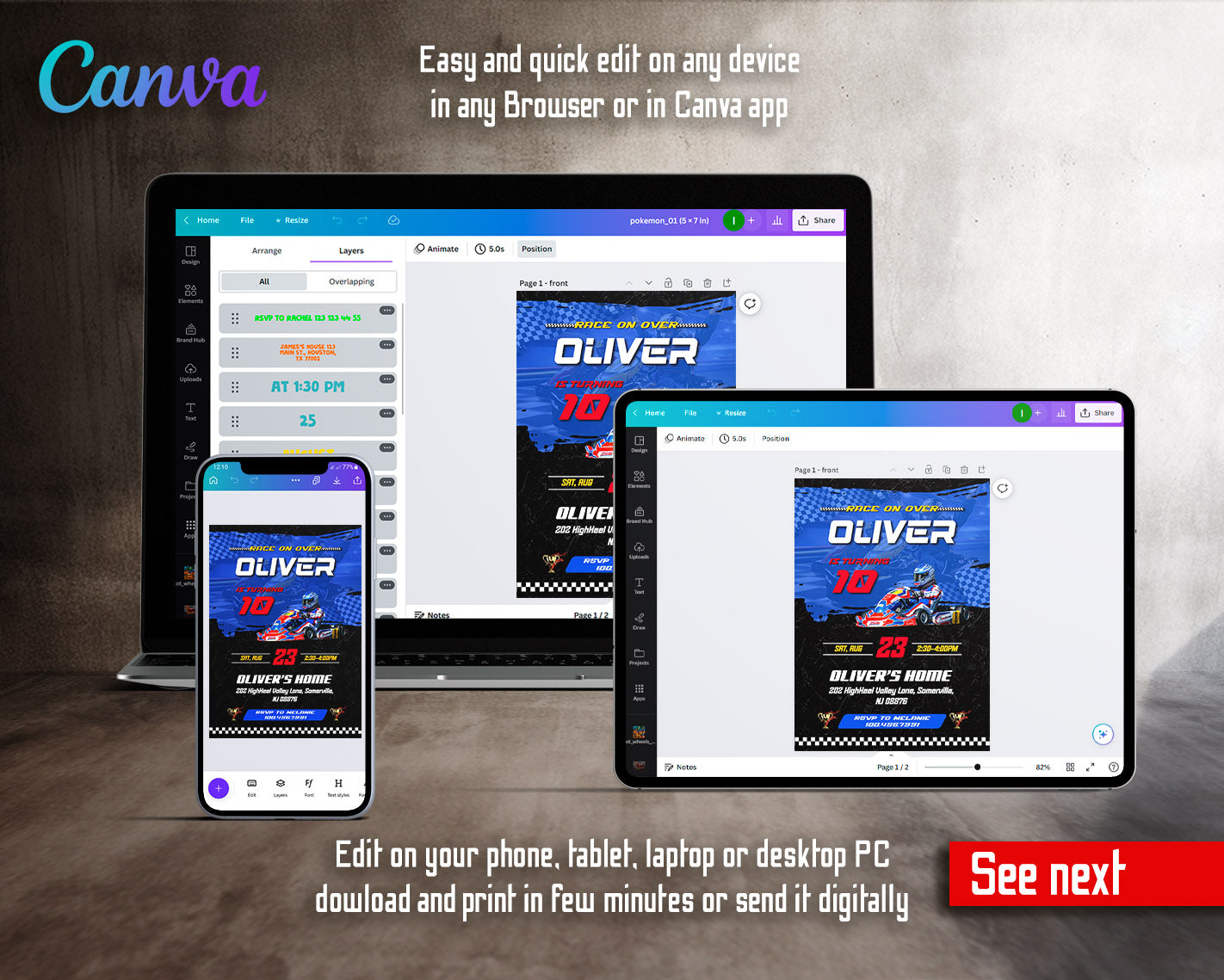 Related Tags: go kart invitation, gokart birthday, karting invite, racing invitation, go kart pilot party, digital invite, editable invitation, birthday invitation, printable invitation, invite template, evite, speed race invite, boy birthday