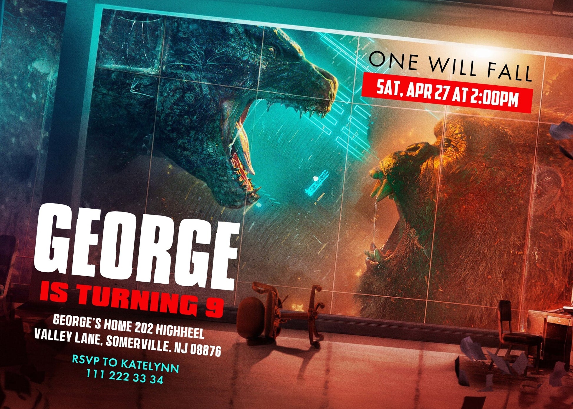 Godzilla X King Kong customizable invitation template | Share or Print | | EW184