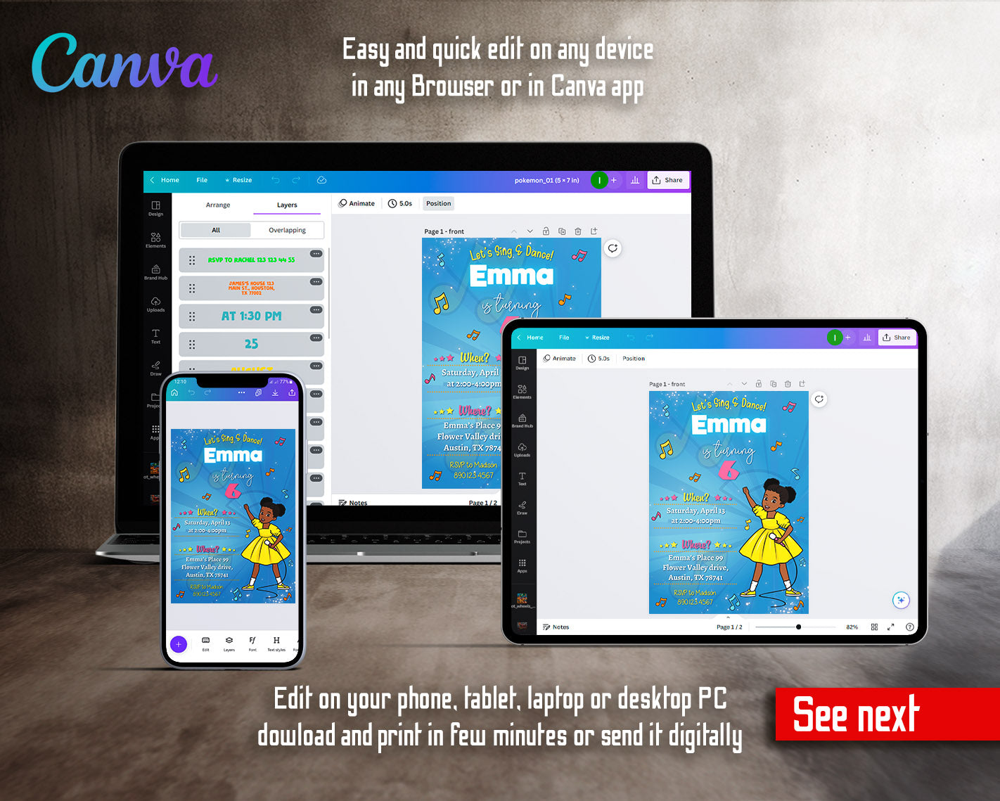 All the invitations are for self-editing. You will edit your template in Canva. It’s easy whether you're using the web browser or the app.