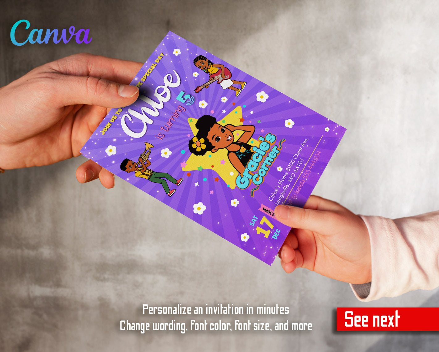 Related Tags: gracie invitation, gracie birthday, gracie corner invite, gracies corner, music party, digital invite, editable invitation, birthday invitation, printable invitation, invite template, evite, girl birthday,