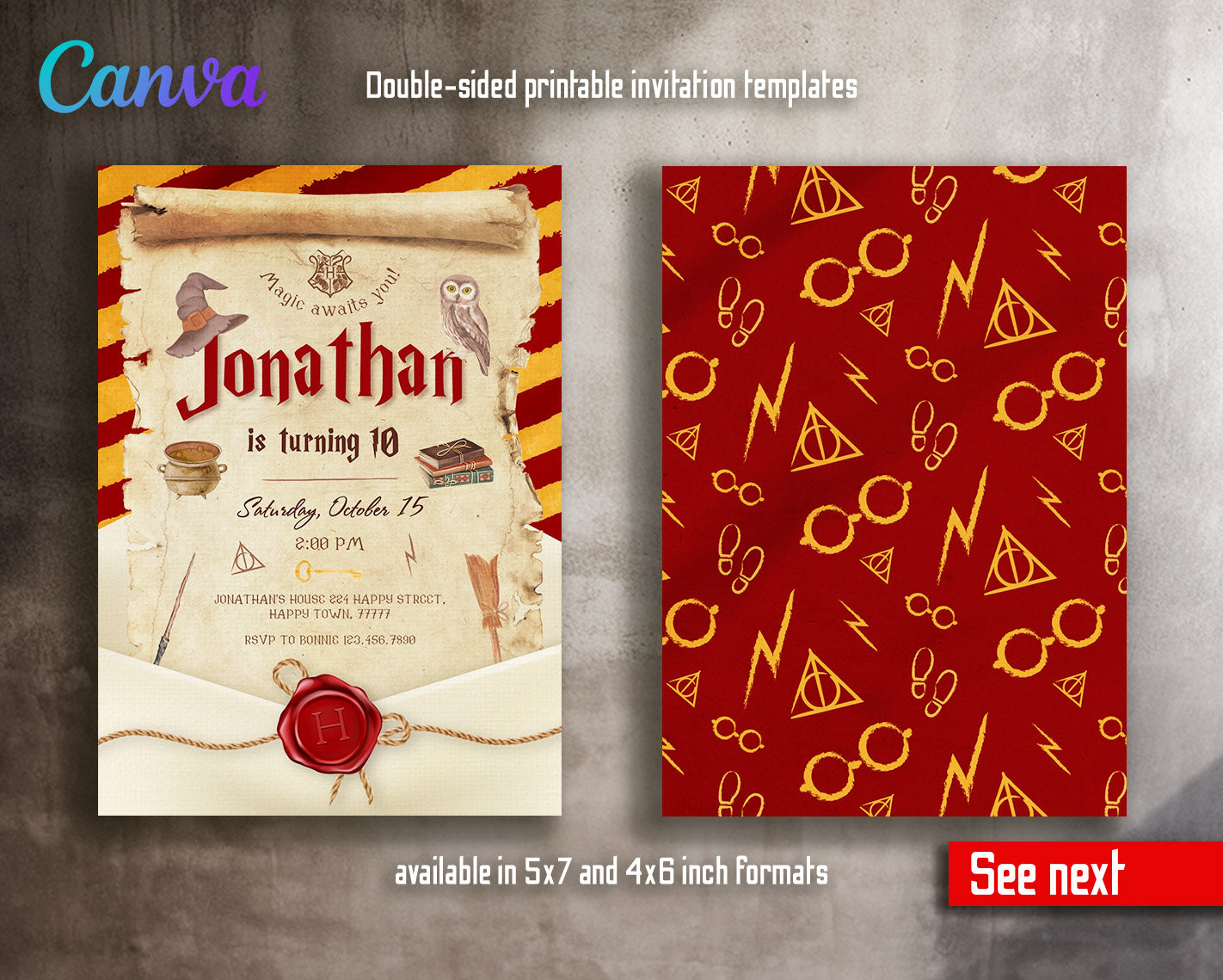 Printable Editable customizable Harry Potter birthday party invitation digital template. Instant download invite.