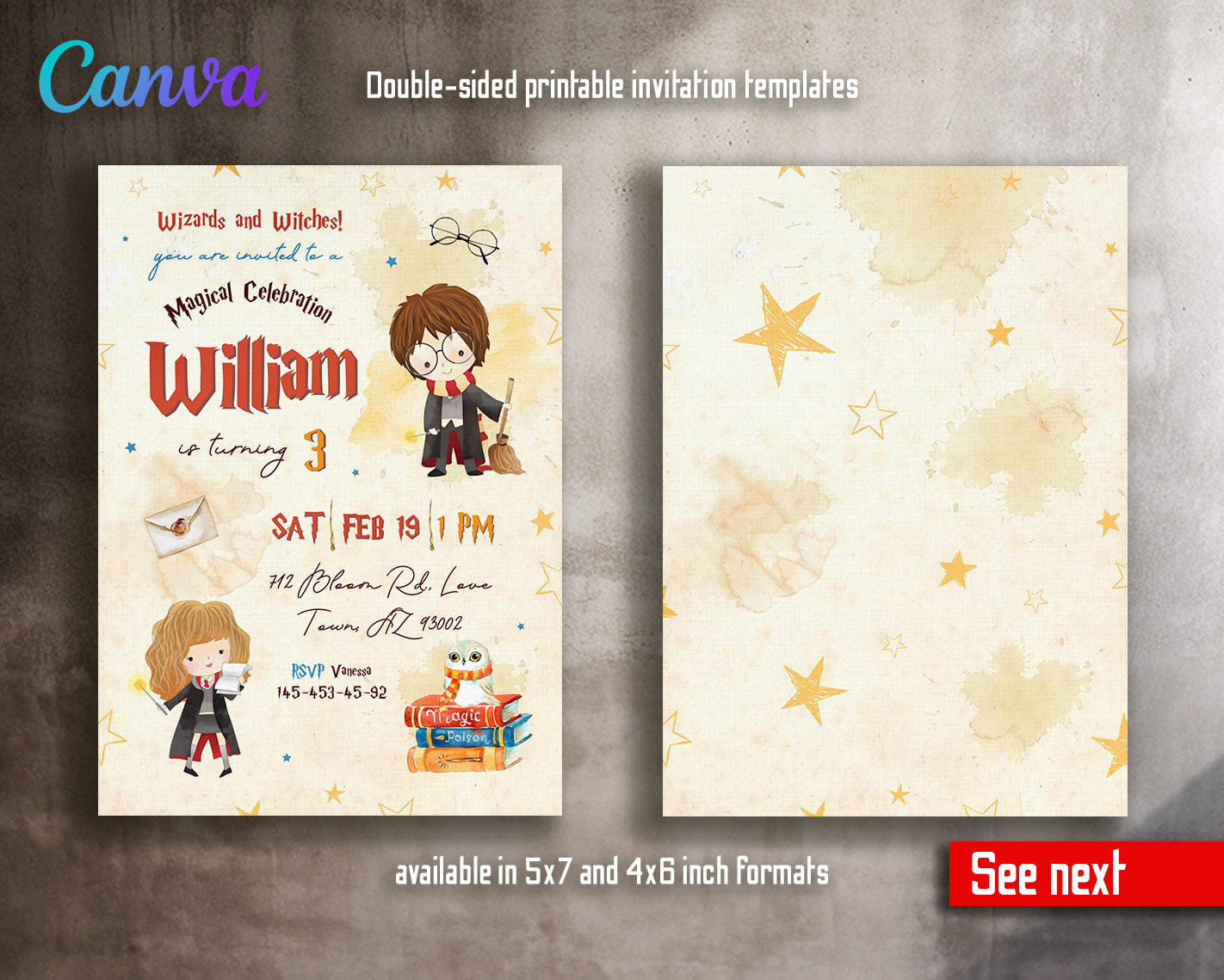 Printable Editable customizable Harry Potter birthday party invitation digital template. Instant download invite.