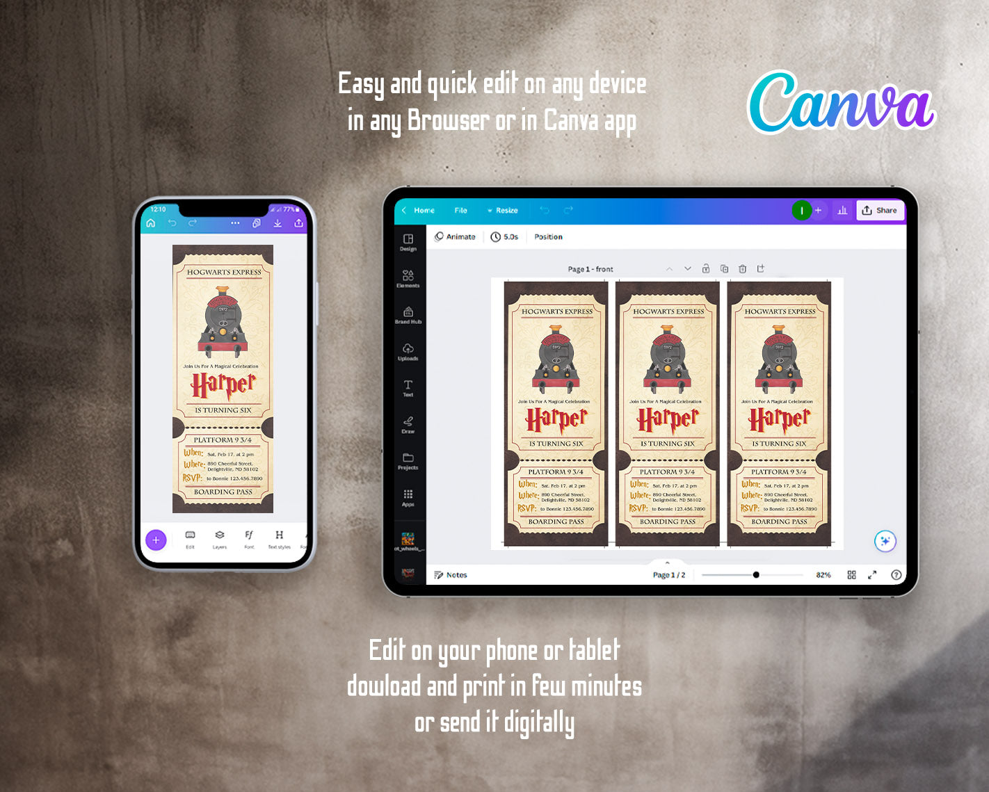 Printable Editable customizable Harry Potter Hogwarts birthday party invitation digital template. Instant download invite.