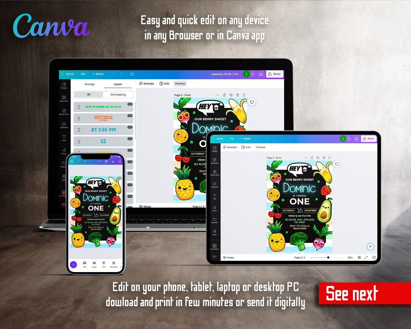 Related Tags: hey bear birthday, sensory invite, dancing fruit invite, kawaii party, boy girl birthday, cartoon fruit invite, heyh bear party, hi bear invitation, 1st 2nd 3rd bday, editable invitation, birthday invitation, printable invitation, invite template