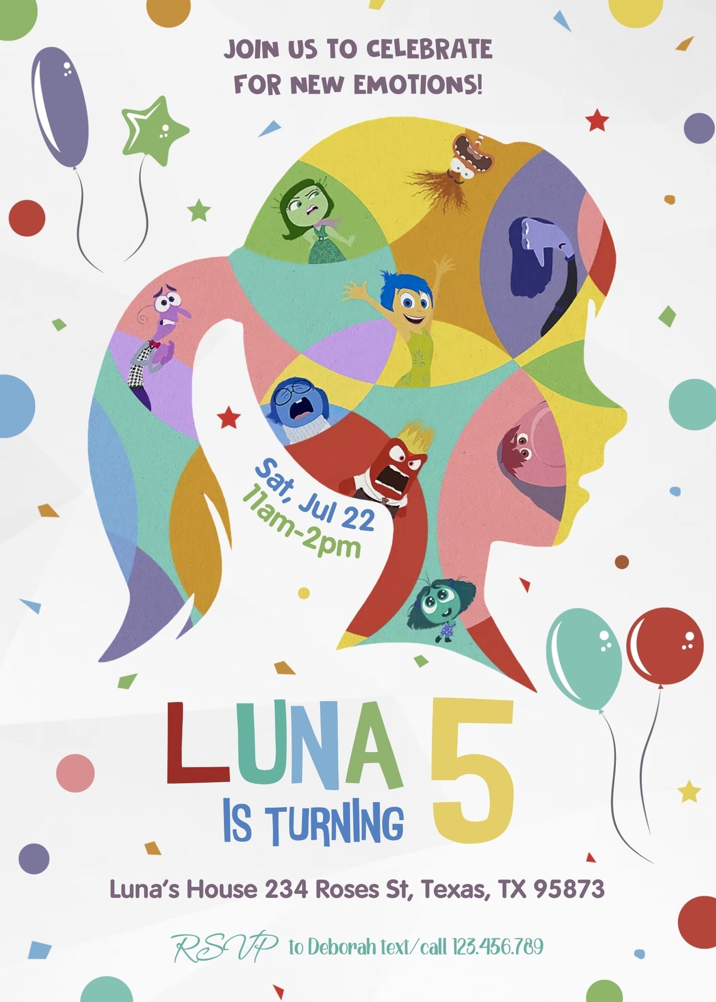 Inside Out 2 customizable invitation template | Share or Print | | VA989