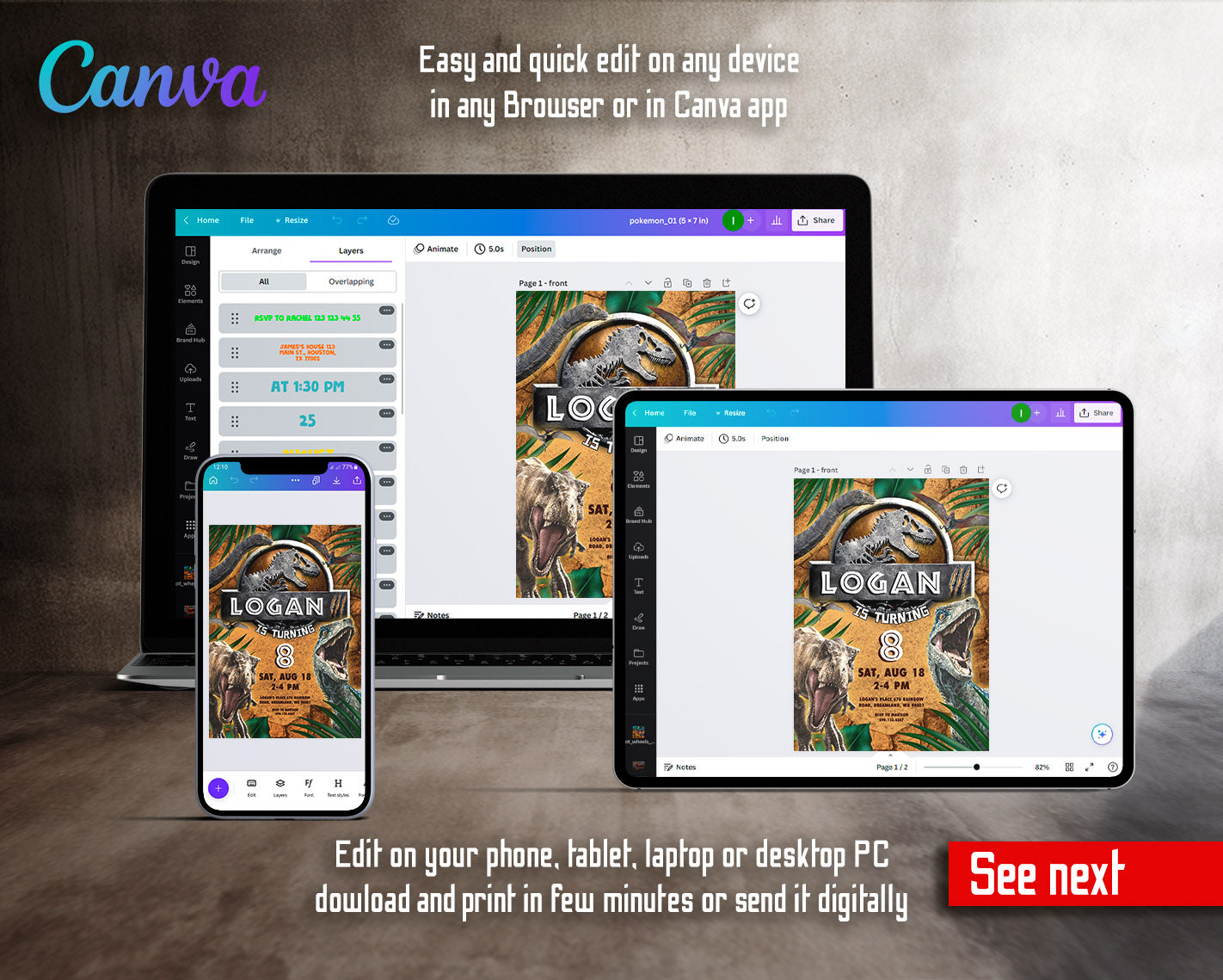 Related Tags: jurassic invitation, jurassic birthday, jurassic invite, dinosaur invitation, jurassic world party, jurassic park, editable invitation, birthday invitation, printable invitation, invite template, t-rex invitation, girl birthday, boy birthday