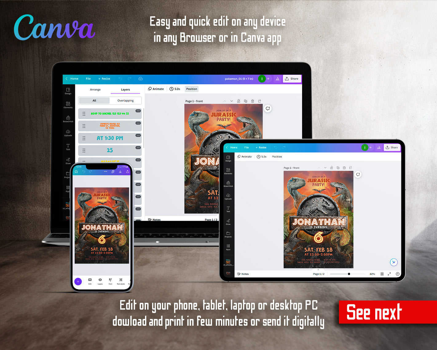 Related Tags: jurassic invitation, jurassic birthday, jurassic invite, dinosaur invitation, jurassic world party, jurassic park, editable invitation, birthday invitation, printable invitation, dino invite template, t-rex invitation, girl birthday, boy birthday