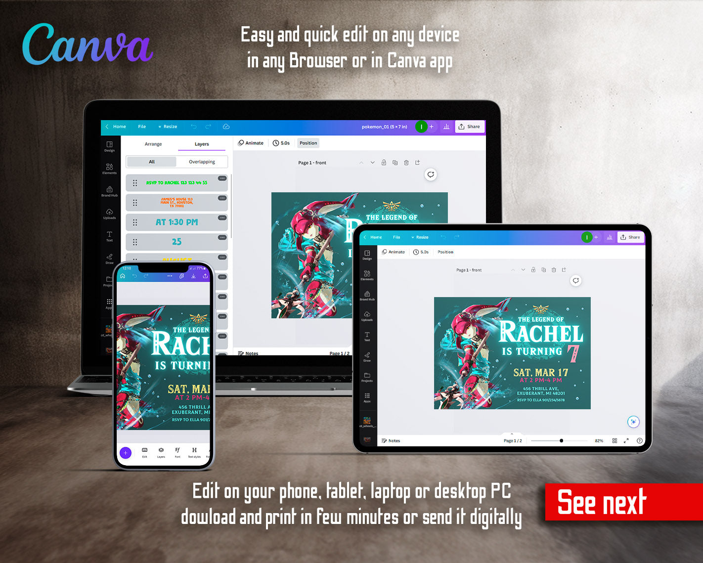 Related Tags: Zelda Invitation, Zelda birthday, legend zelda invite, link invitation, zelda game party, digital invite, editable invitation, birthday invitation, printable invitation, invite template, video game invite, Tears Kingdom invite, gamer party