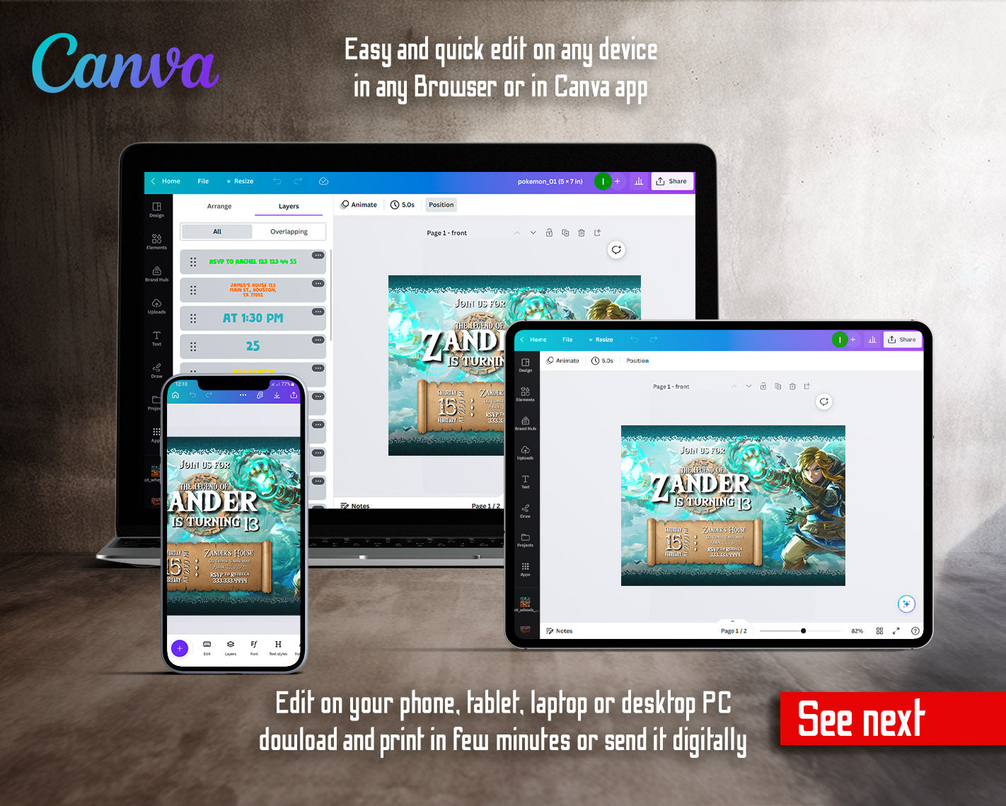 Related Tags: Zelda Invitation, Zelda birthday, legend zelda invite, link invitation, zelda game party, digital invite, editable invitation, birthday invitation, printable invitation, invite template, video game invite, Tears Kingdom invite, gamer party