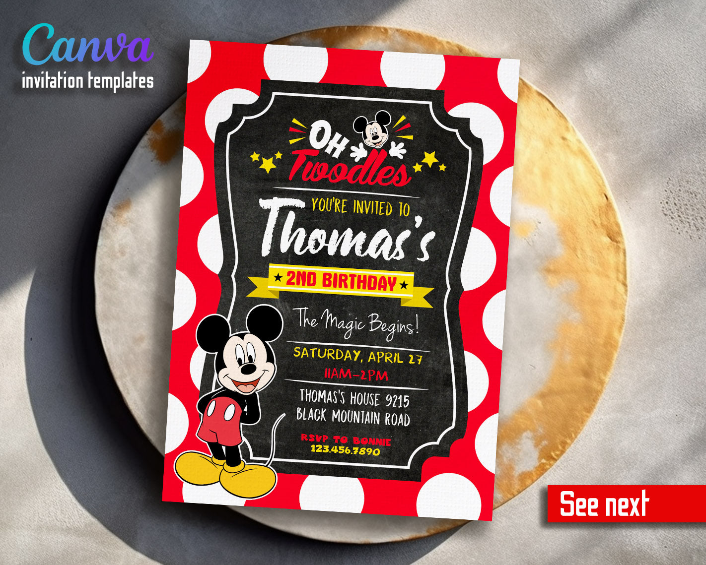 Related Tags: Mickey Mouse invite, Mickey birthday, Mickey invitation, clubhouse invite, disney party, digital invite, editable invitation, birthday invitation, printable invitation, two dless template, second evite, 2nd birthday,