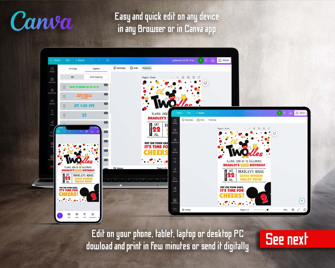 Related Tags: Mickey Mouse invite, Mickey birthday, Mickey invitation, clubhouse invite, disney party, digital invite, editable invitation, birthday invitation, printable invitation, two dless template, second evite, 2nd birthday,
