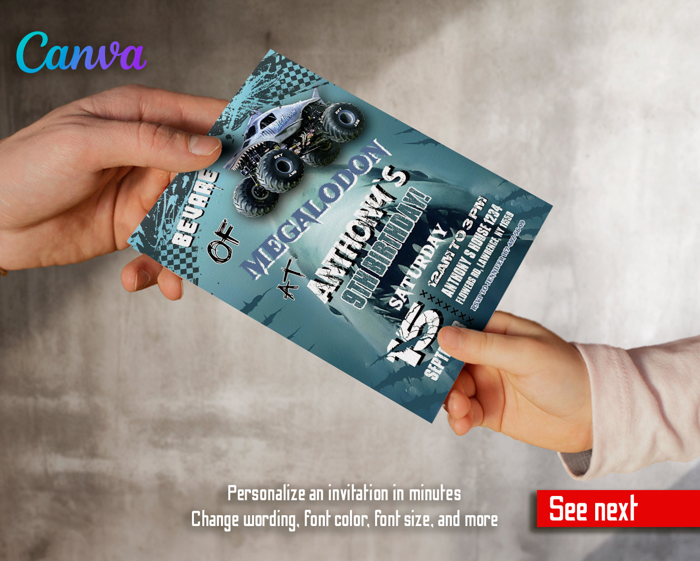 Monster Jam Megalodon customizable invite template boy | instant download | Share or Print | EW724