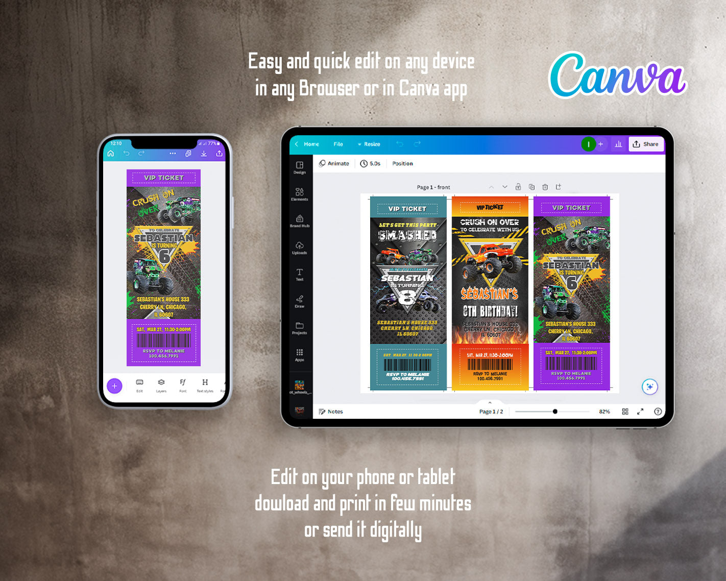 All the invitations are for self-editing. You will edit your template in Canva. It’s easy whether you're using the web browser or the app.