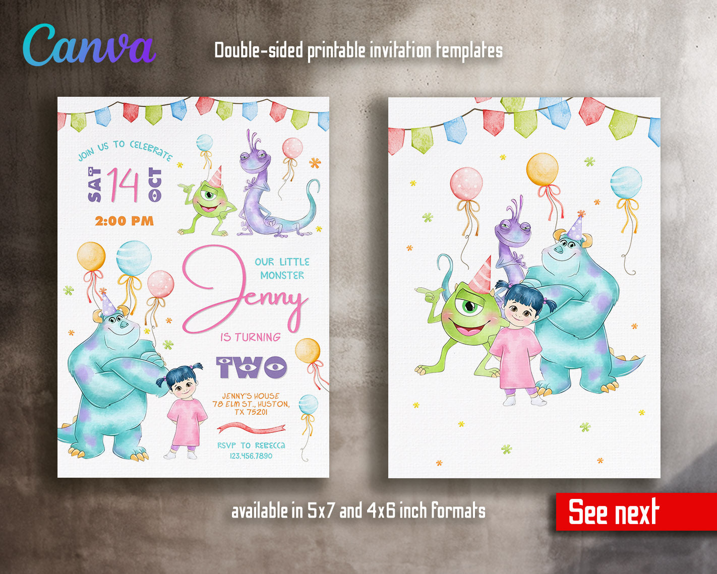 Printable Editable customizable Monsters, Inc. birthday party invitation digital template. Instant download invite.