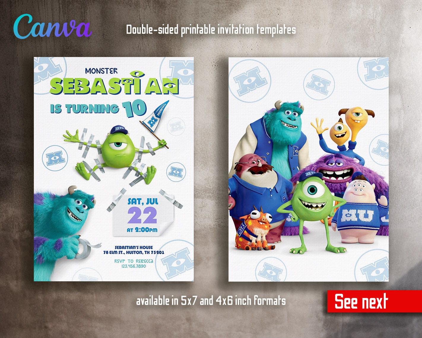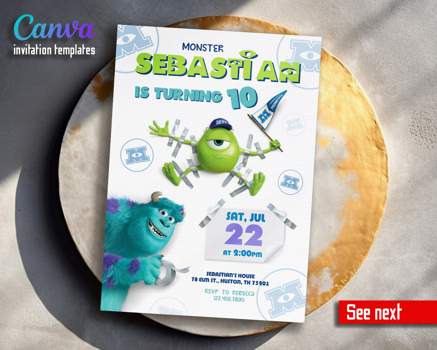 Related Tags: monster inc birthday, Mike Wazowski invite, Sulley invitation, monster inc party, boy girl birthday, monster university, halloween party, scary invitation, 1st 2nd 3rd bday, editable invitation, birthday invitation, printable invitation, invite template