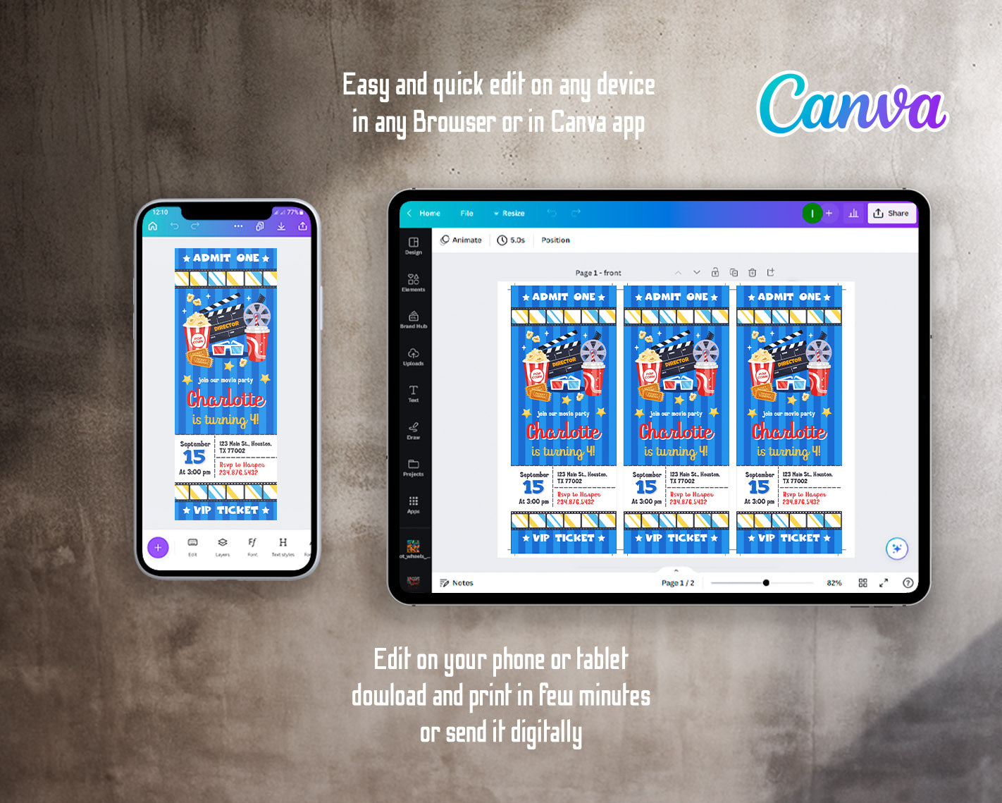 Related Tags: movie birthday, cinema invite, red carpet invite, movie party, boy girl birthday, cinema invitation, movie party ticket, ticket invitation, 1st 2nd 3rd bday, editable invitation, birthday invitation, printable invitation, popcorn invite