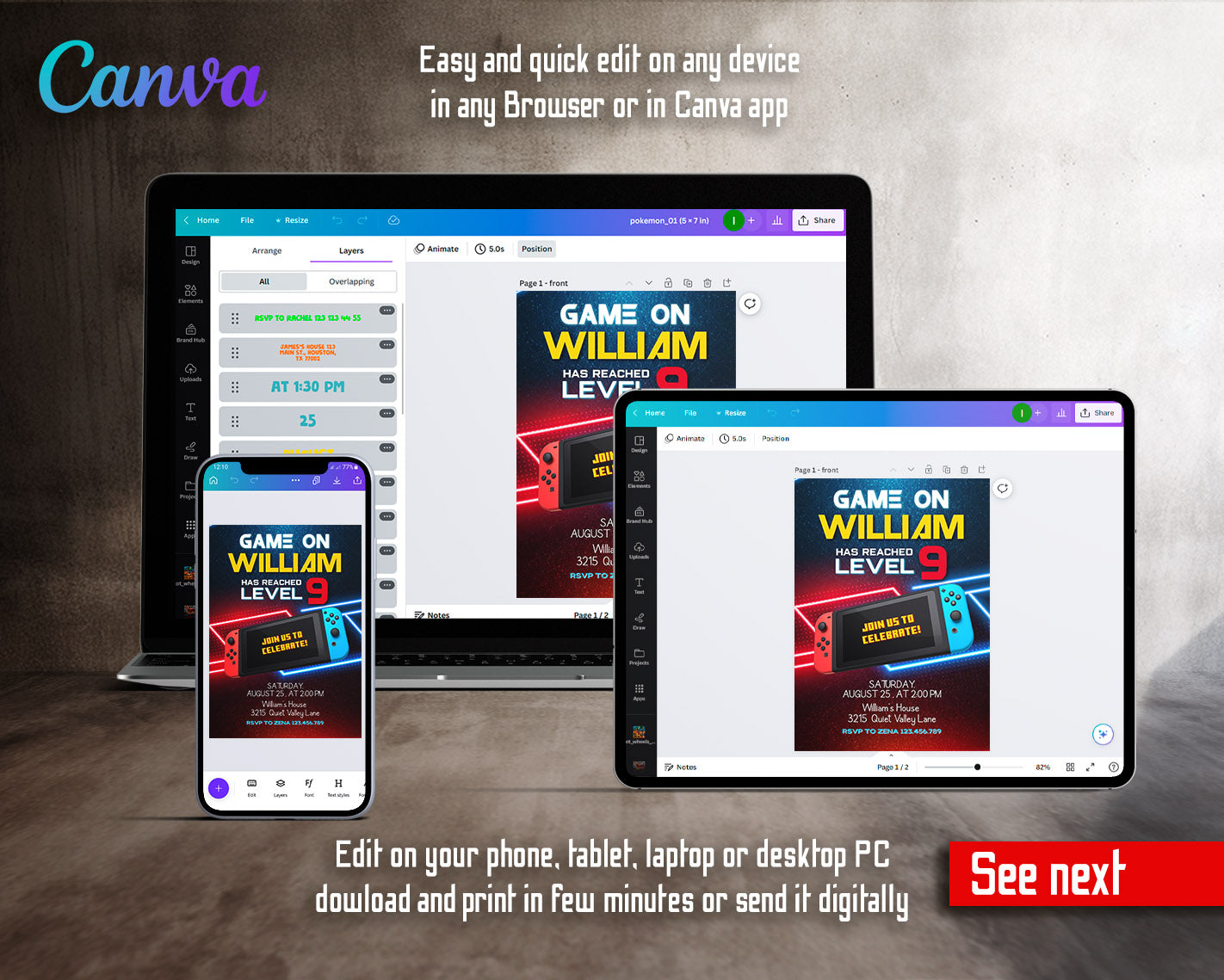 Related Tags: boy birthday, birthday, nintendo invite, switch invitation, video game party, gamer invitation, editable invitation, birthday invitation, printable invitation, invitation, evite, girl birthday,