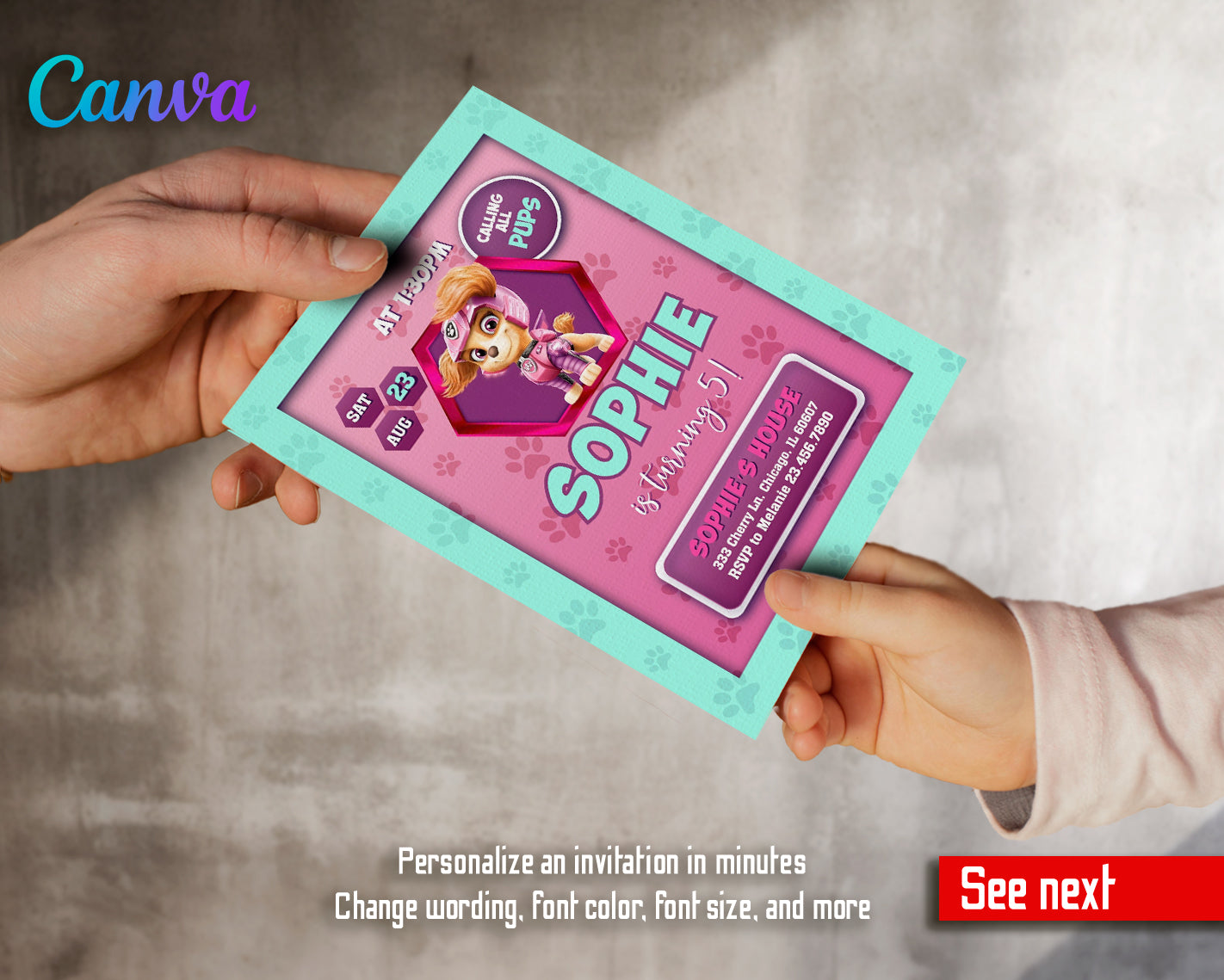 Paw Patrol customizable invite template girl | instant download | Share or Print | WJ850