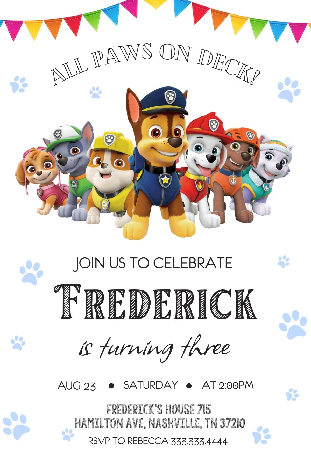 Paw Patrol customizable invite template | instant download | Share or Print | PT142