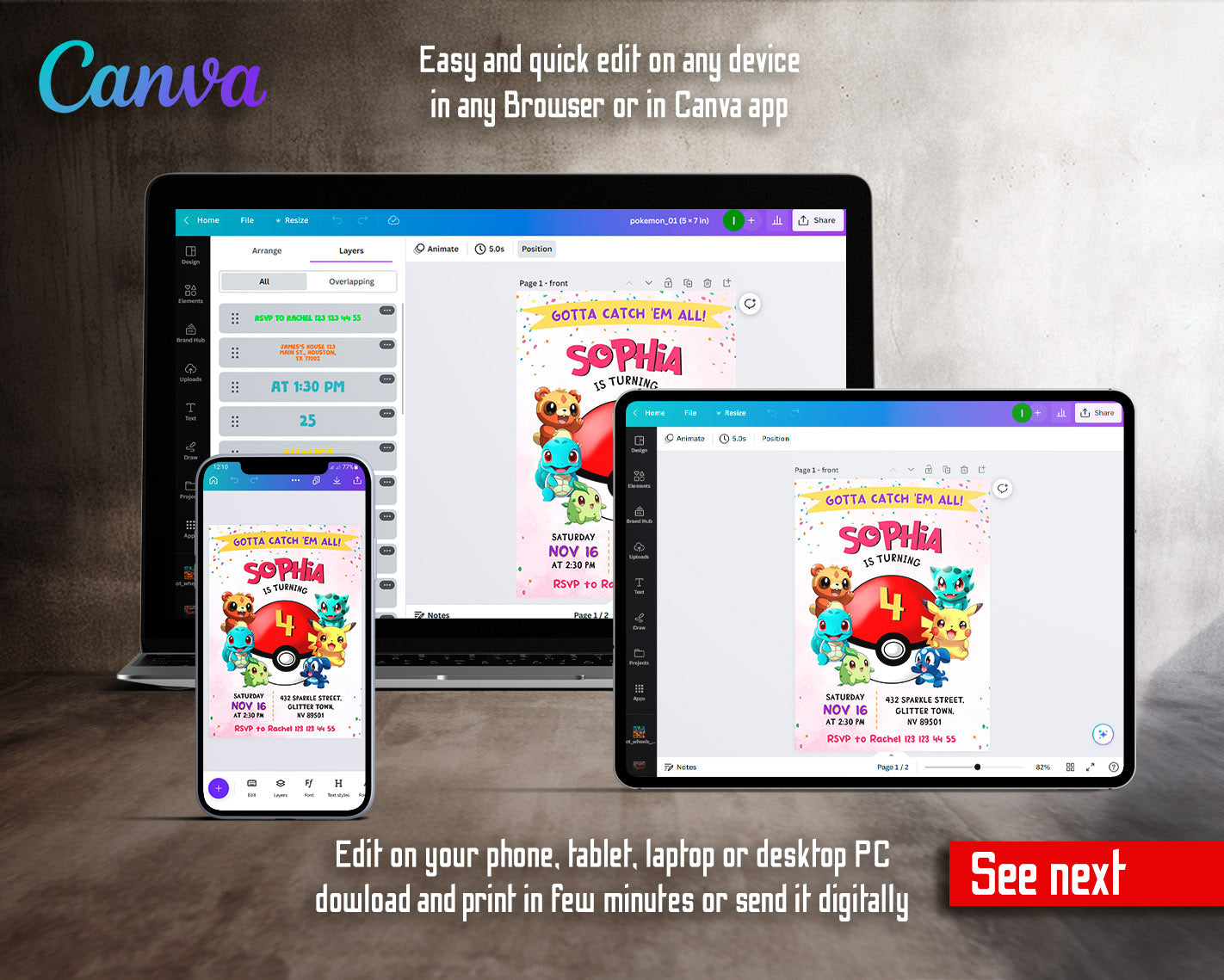 Related Tags: pokemon invitation, pokemon birthday, pokemone invite, pokemone invitation, pikachu party, digital invite, editable invitation, birthday invitation, printable invitation, invite template, i choose you, girl birthday, boy birthday