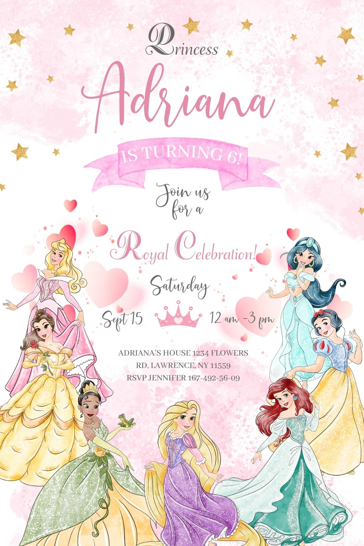 Princess Disney customizable invite template girl | instant download | Share or Print | IO587