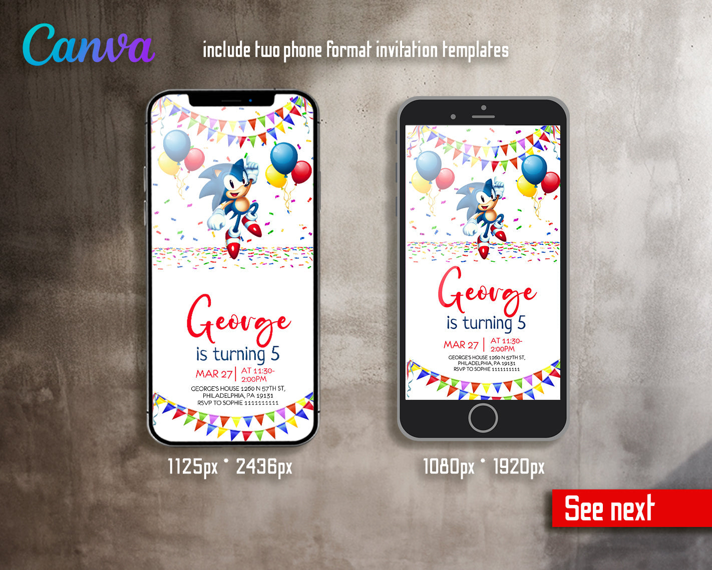 Sonic Hedgehog customizable invite template | instant download | Share or Print | NZ188