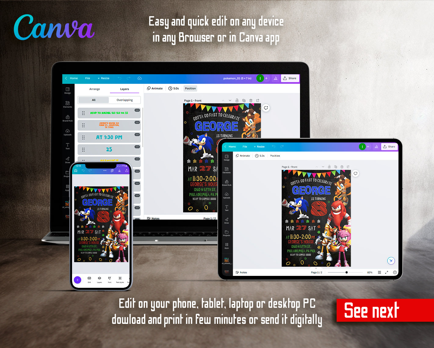 Sonic Hedgehog customizable invite template | instant download | Share or Print | BM911