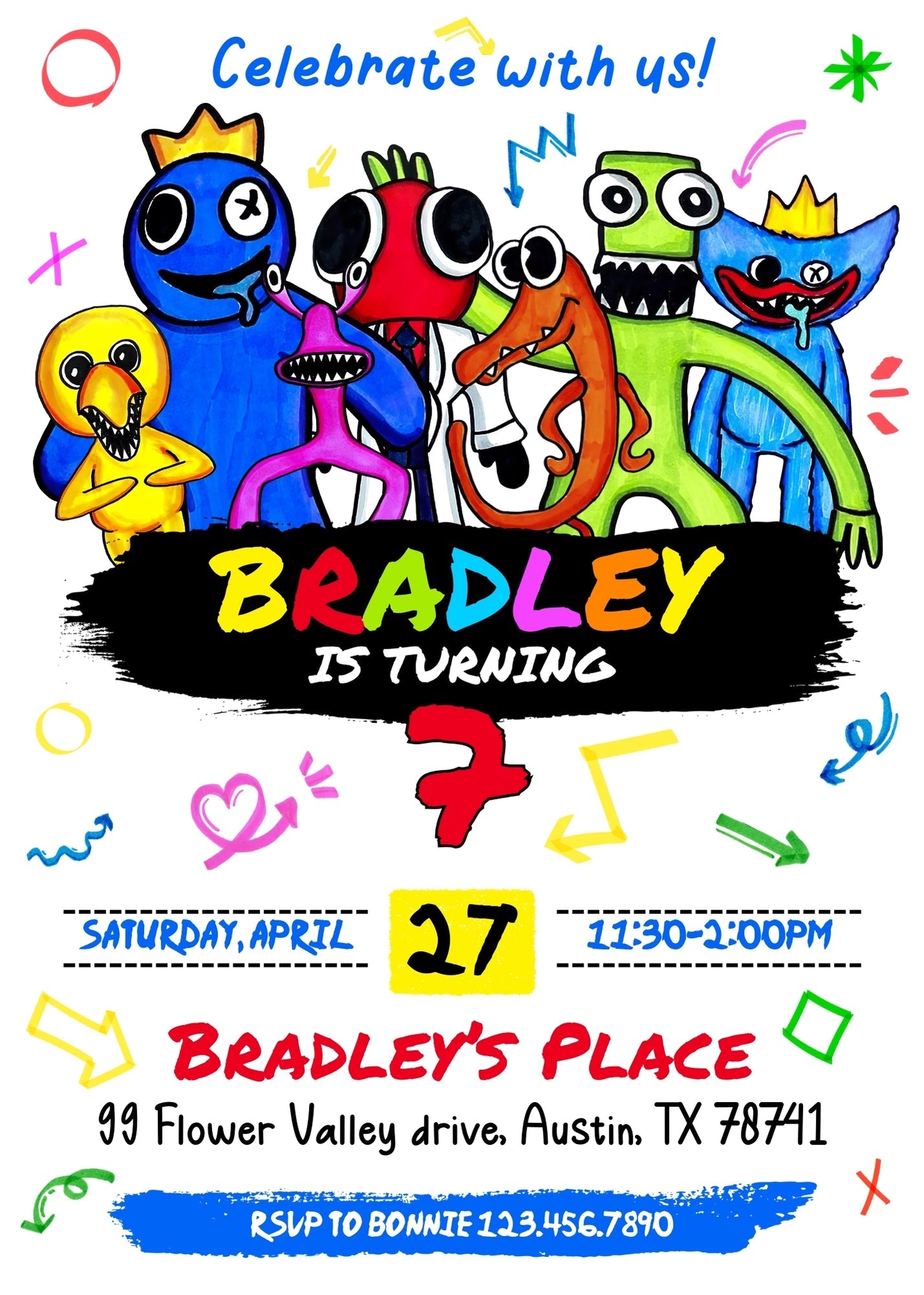 Related Tags: rainbow friends, rainbow birthday, rainbow friend party, rainbow invitation, rainbow gang party, digital invite, editable invitation, birthday invitation, printable invitation, invite template, evite, girl birthday,