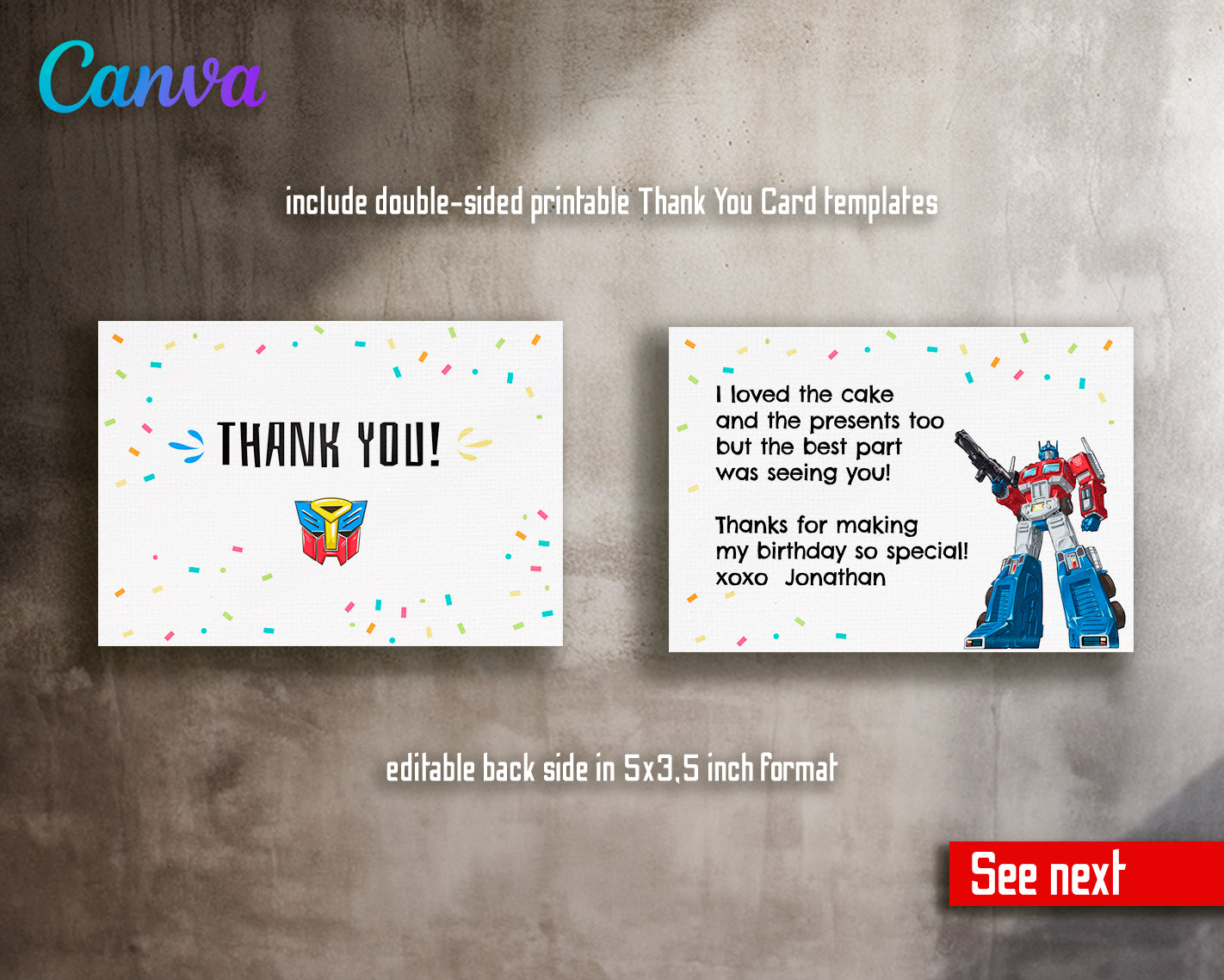 3. Editable Thank You Card Template in 5" x 3.5" size, backside included for your personalized note
