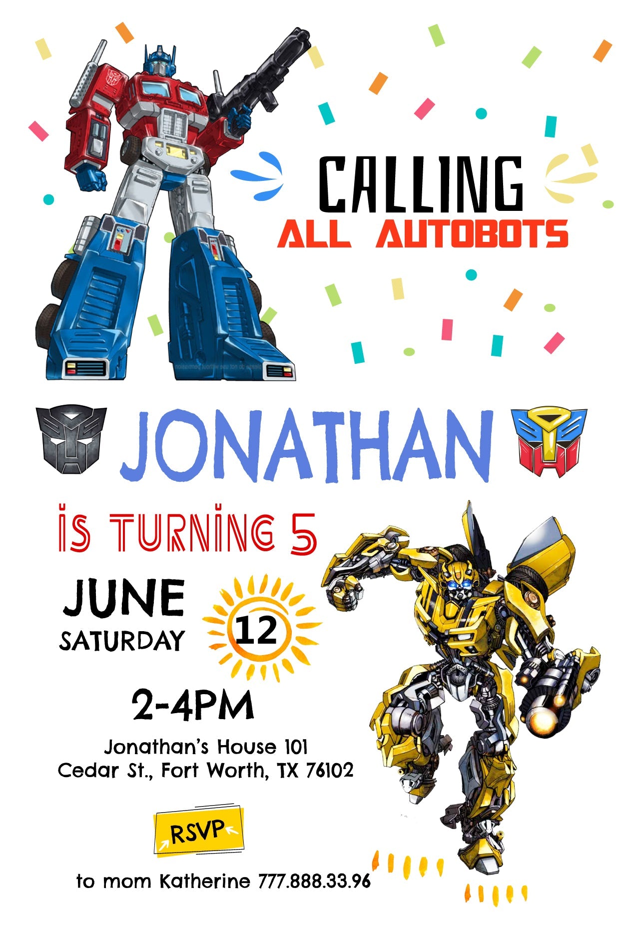 Rescue Bots Birthday Invitation, Optimus Prime invite, Autobots party invitation, Bumblebee invitation, transformers party, Printable invite
