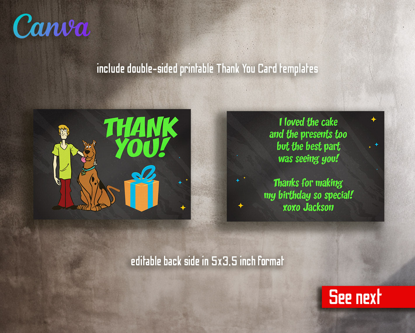 Printable Editable customizable Scooby-Doo birthday party invitation digital template. Instant download invite.