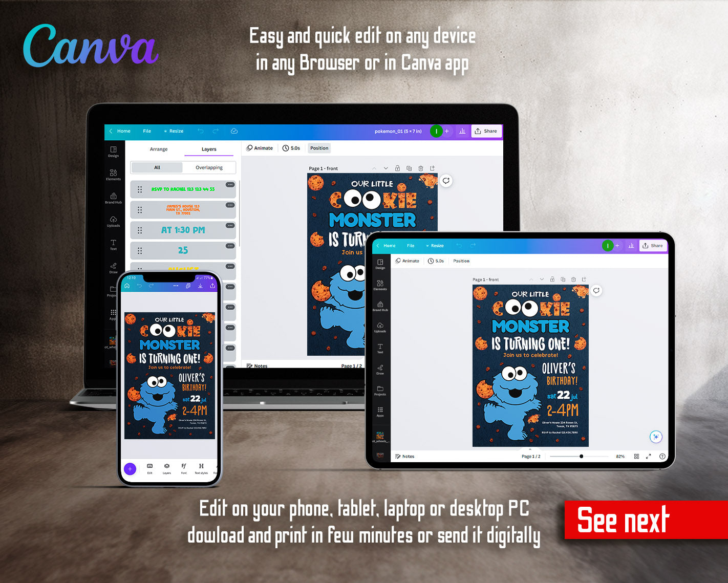 Related Tags: sesame invitation, sesame street invite, sesame birthday, elmo invitation, sesame party, cookie monster, editable invitation, birthday invitation, printable invitation, second 2nd birthday, 1st first birthday, girl birthday, boy birthday