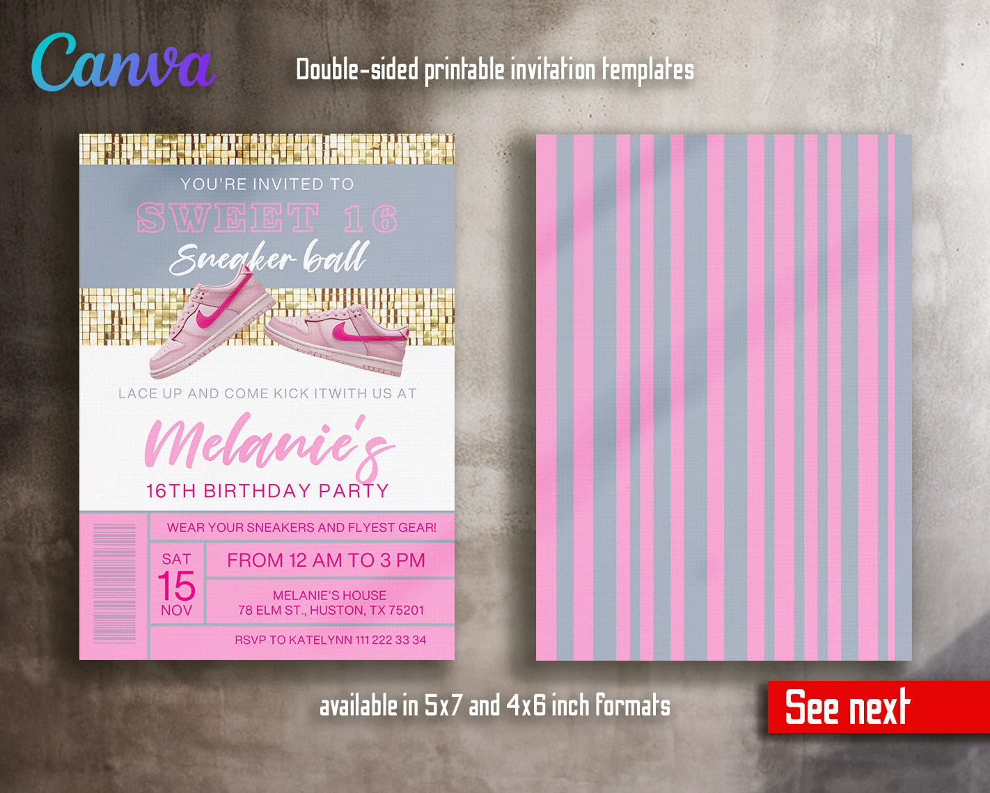 All the invitations are for self-editing. You will edit your template in Canva. It’s easy whether you're using the web browser or the app.