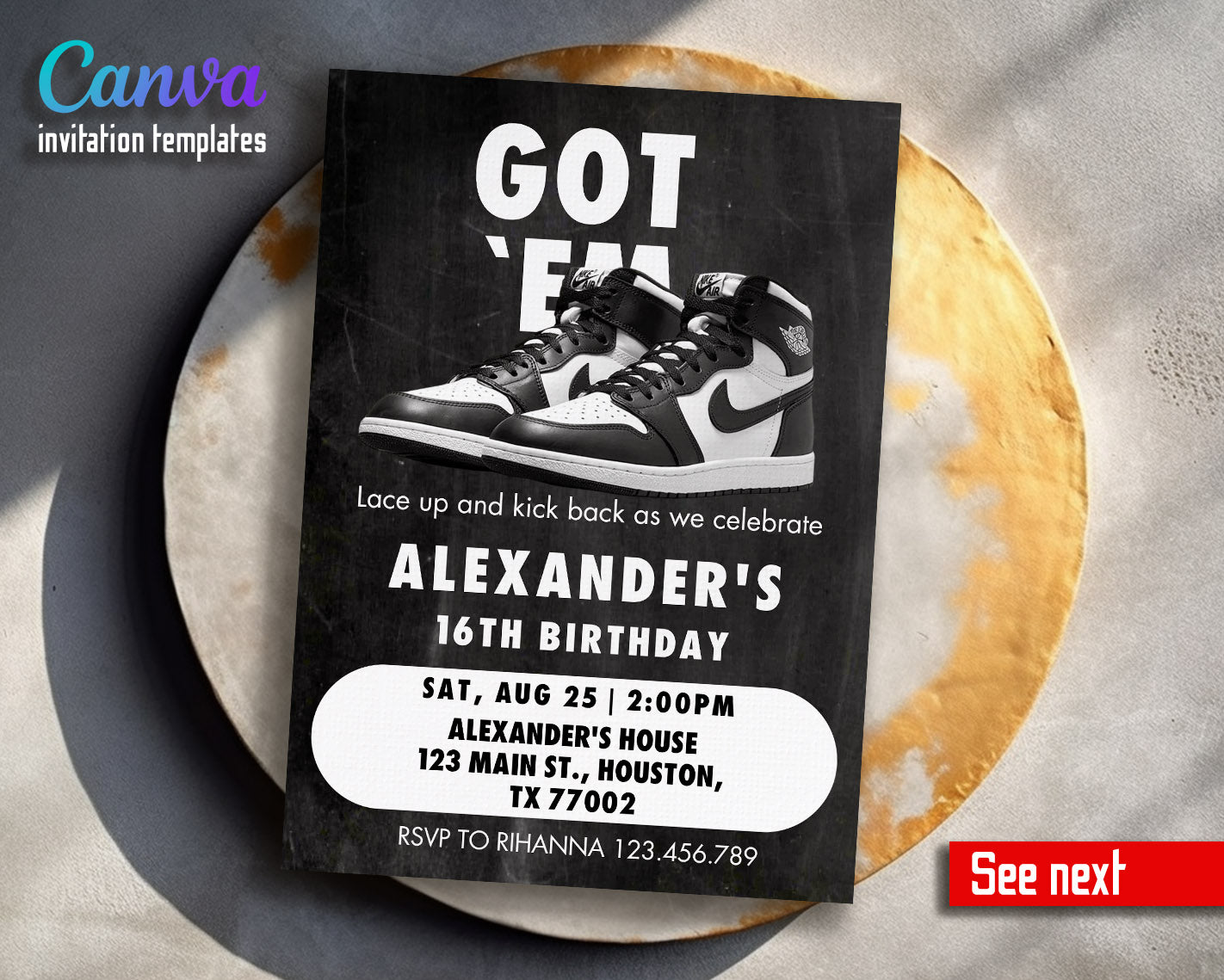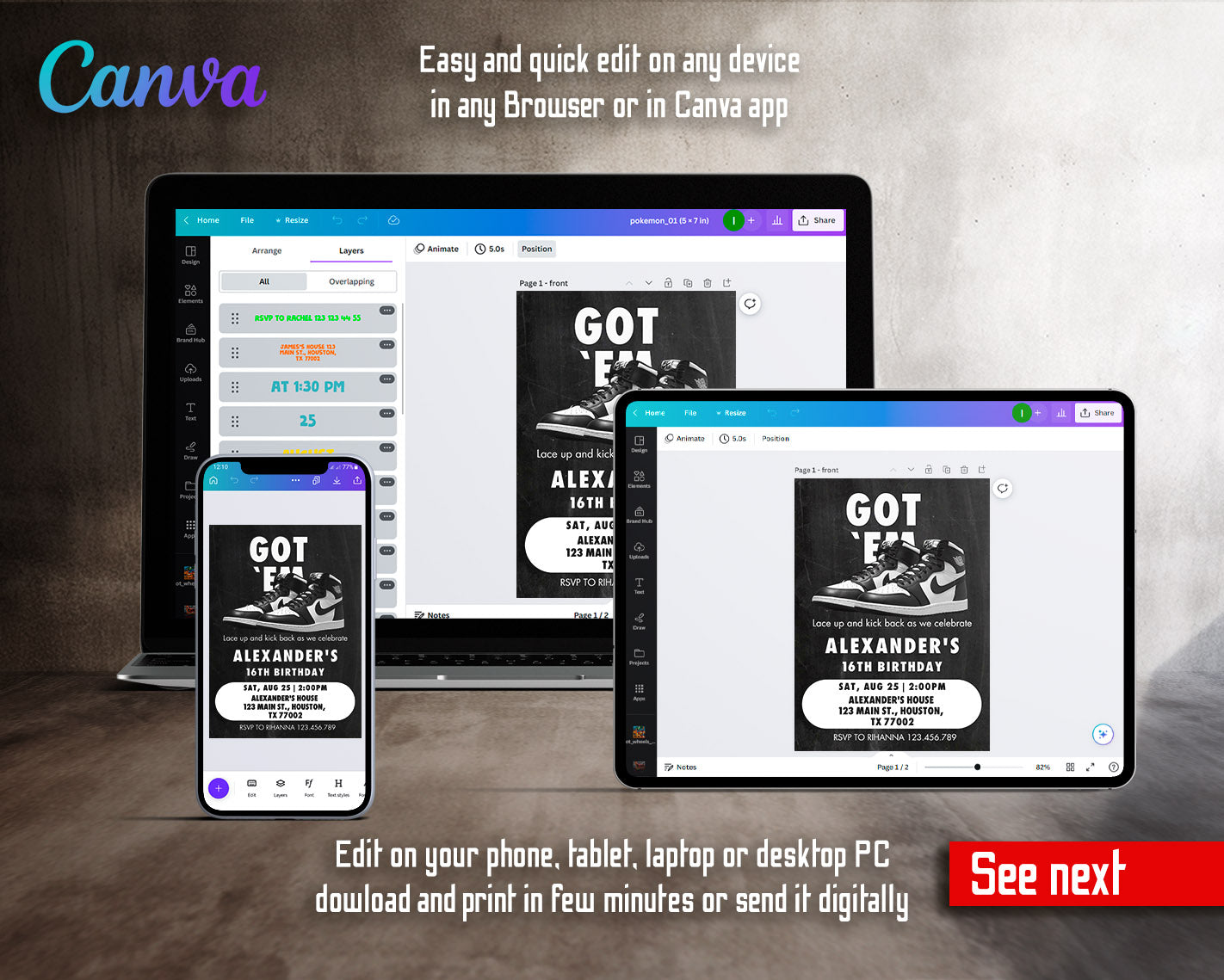 Printable Editable customizable Sneakers Sneaker Ball birthday party invitation digital template. Instant download invite.