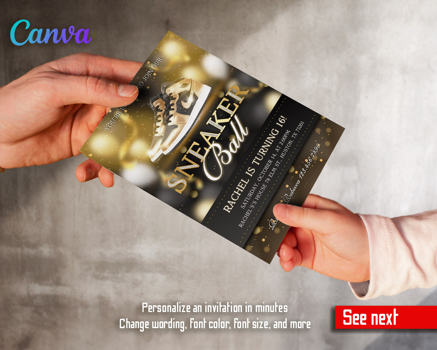 Printable Editable customizable Sneakers Sneaker Ball birthday party invitation digital template. Instant download invite.