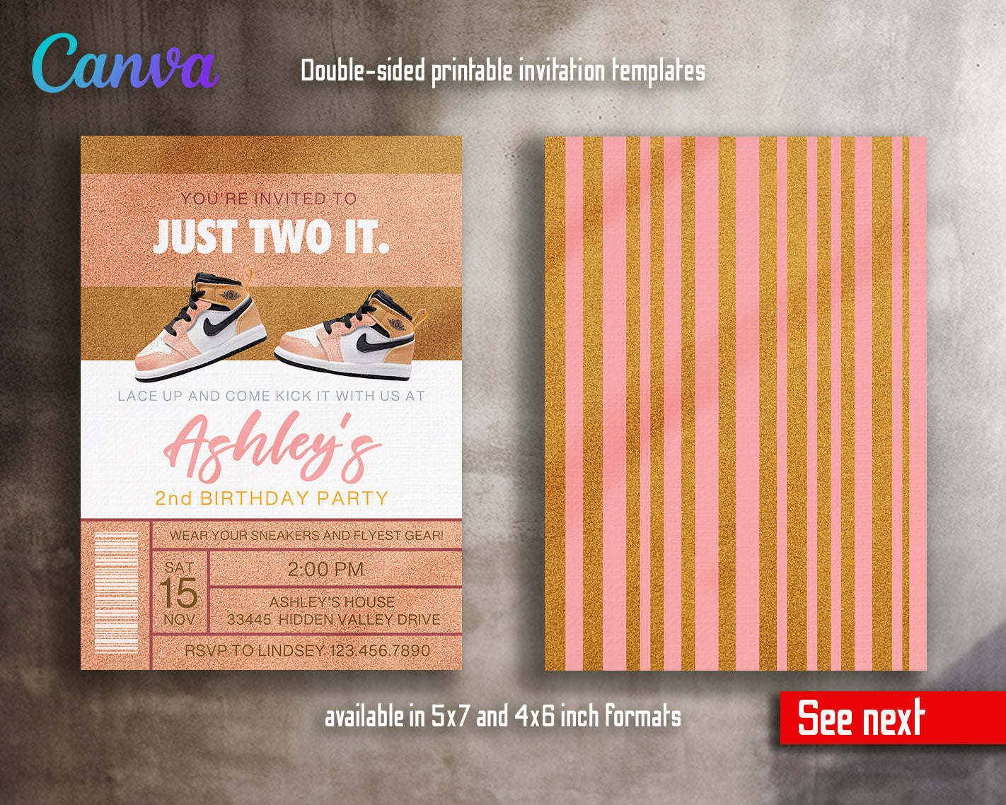 All the invitations are for self-editing. You will edit your template in Canva. It’s easy whether you're using the web browser or the app.