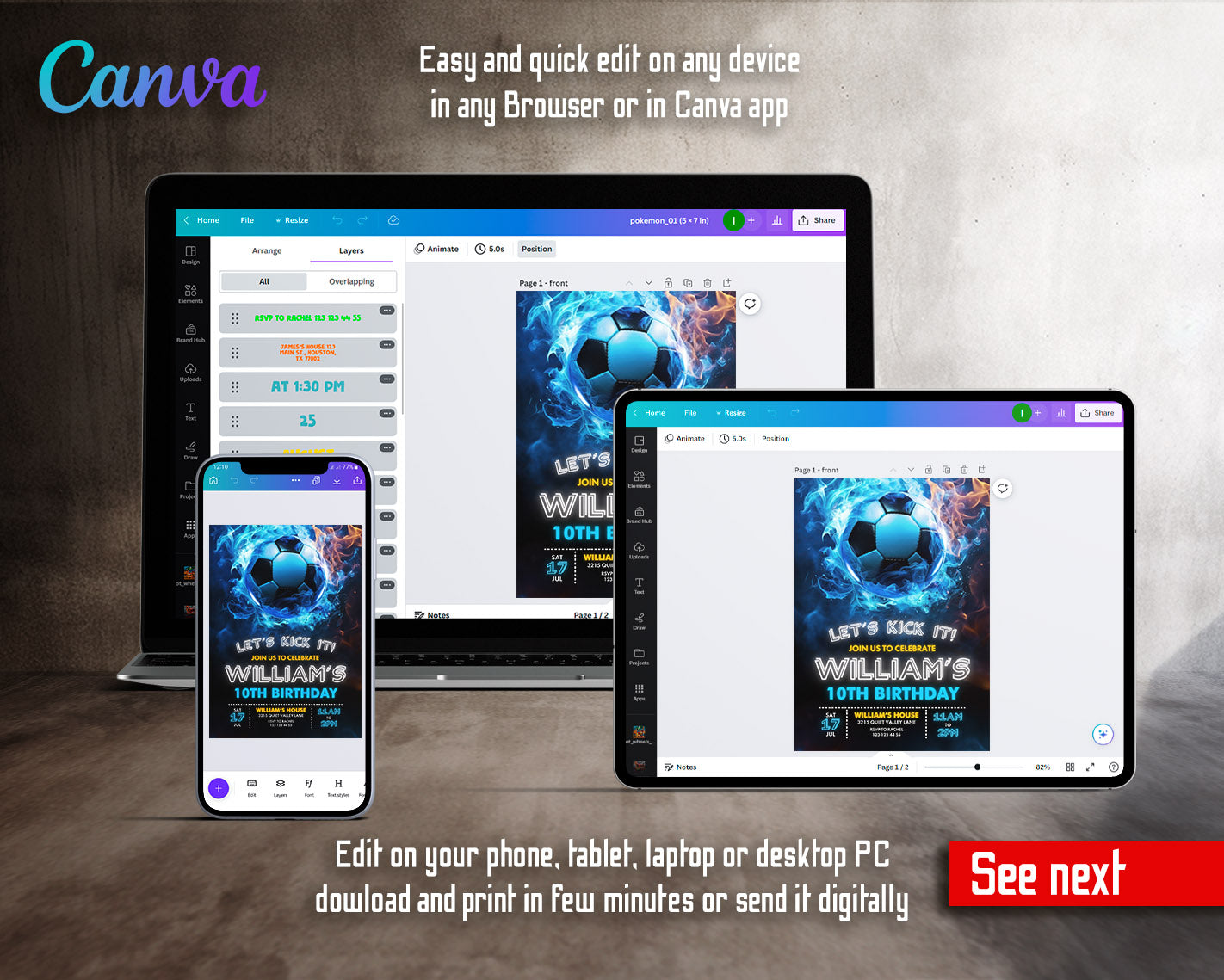 Related Tags: soccer invitation, Champions League, fifa invitation, sports invitation, player party, messi invitation, editable invitation, soccer birthday, printable invitation, soccer ball, fifa game evite, all stars birthday,