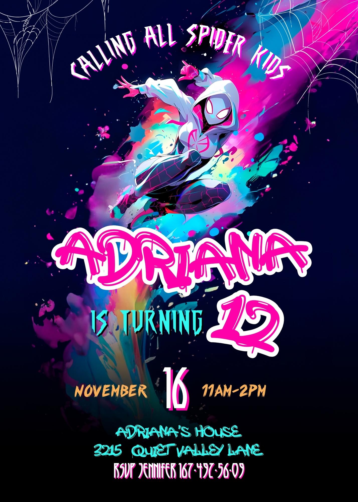 Related Tags: spiderman invitation, spider gwen birthday, spidey gwen invite, ghost spidey invite, spider girl party, amazing friends, superhero invitation, birthday invitation, printable invitation, invite template, spider-verse evite, marvel girl birthday,