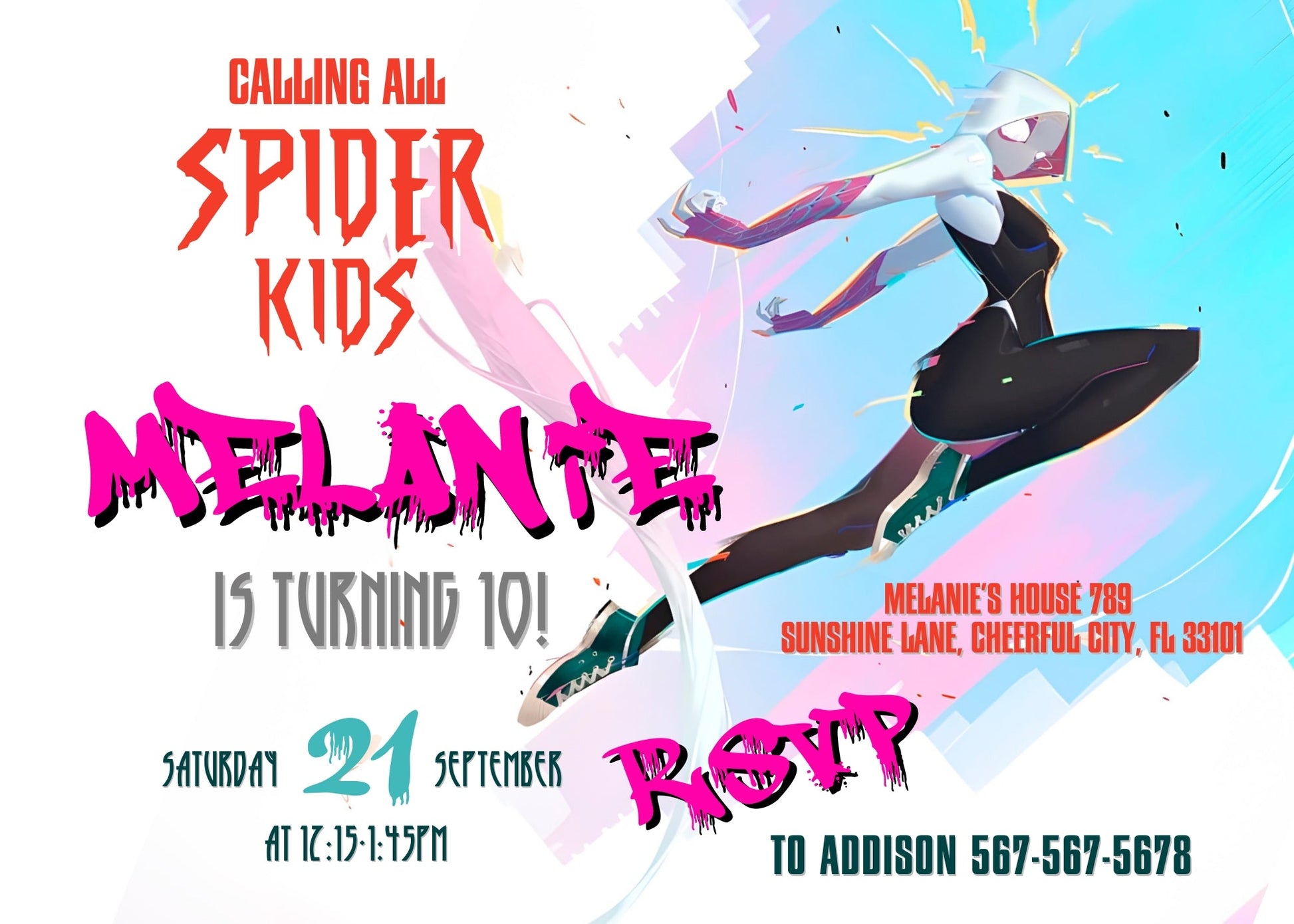 Related Tags: spiderman invitation, spider gwen birthday, spidey gwen invite, ghost spidey invite, spider girl party, amazing friends, superhero invitation, birthday invitation, printable invitation, invite template, spider-verse evite, marvel girl birthday,