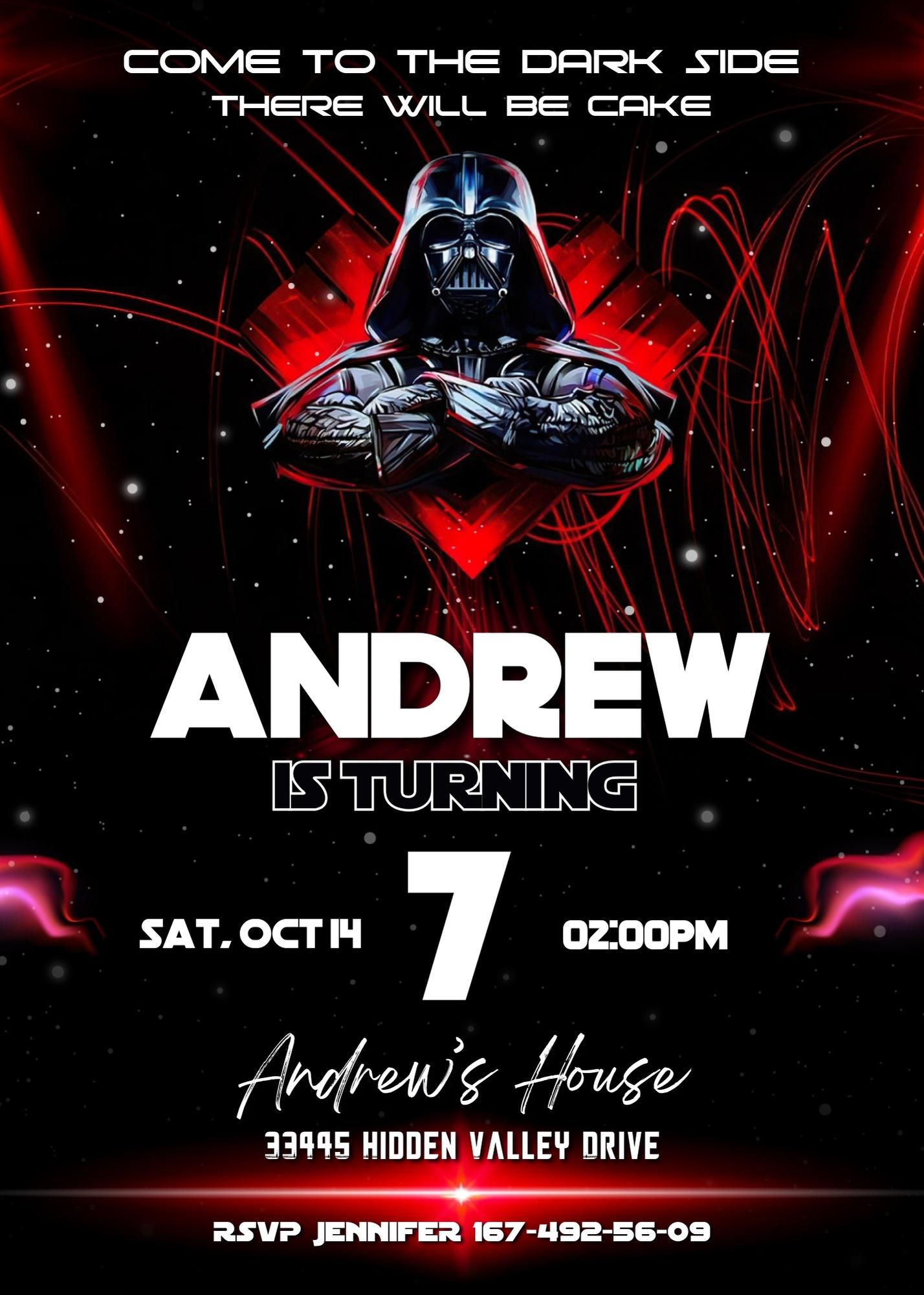Printable Editable customizable Star Wars Darth Vader birthday party invitation digital template. Instant download invite.