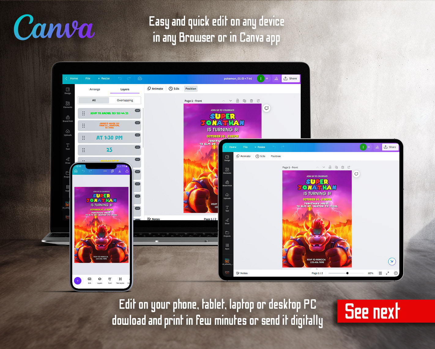 Related Tags: mario invitation, super mario birthday, mario bros invite, luigi invitation, super mario party, digital invite, editable invitation, birthday invitation, printable invitation, invite template, mario bros movie, girl birthday,