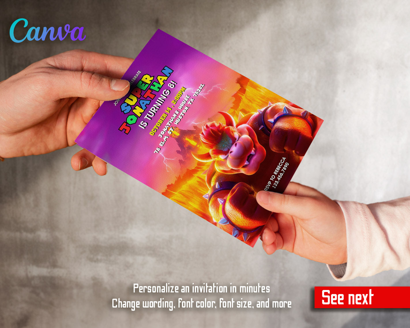 Printable Editable customizable Super Mario Bros birthday party invitation digital template. Instant download invite.