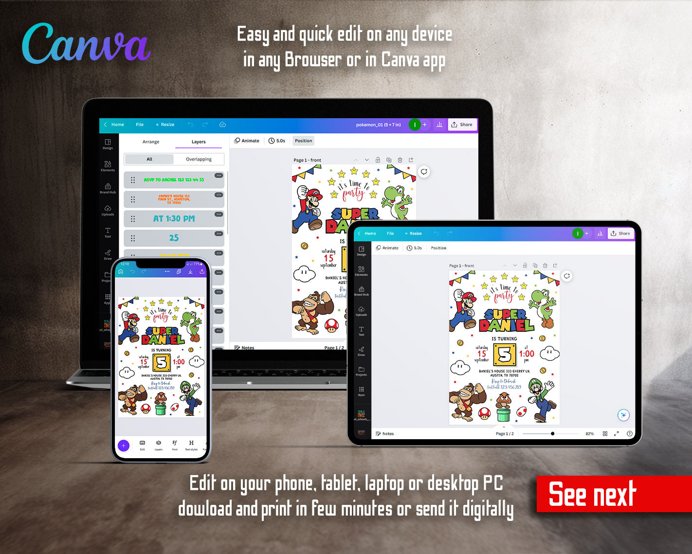 Related Tags: mario invitation, super mario birthday, mario bros invite, luigi invitation, super mario party, digital invite, editable invitation, birthday invitation, printable invitation, invite template, mario bros movie, girl birthday,