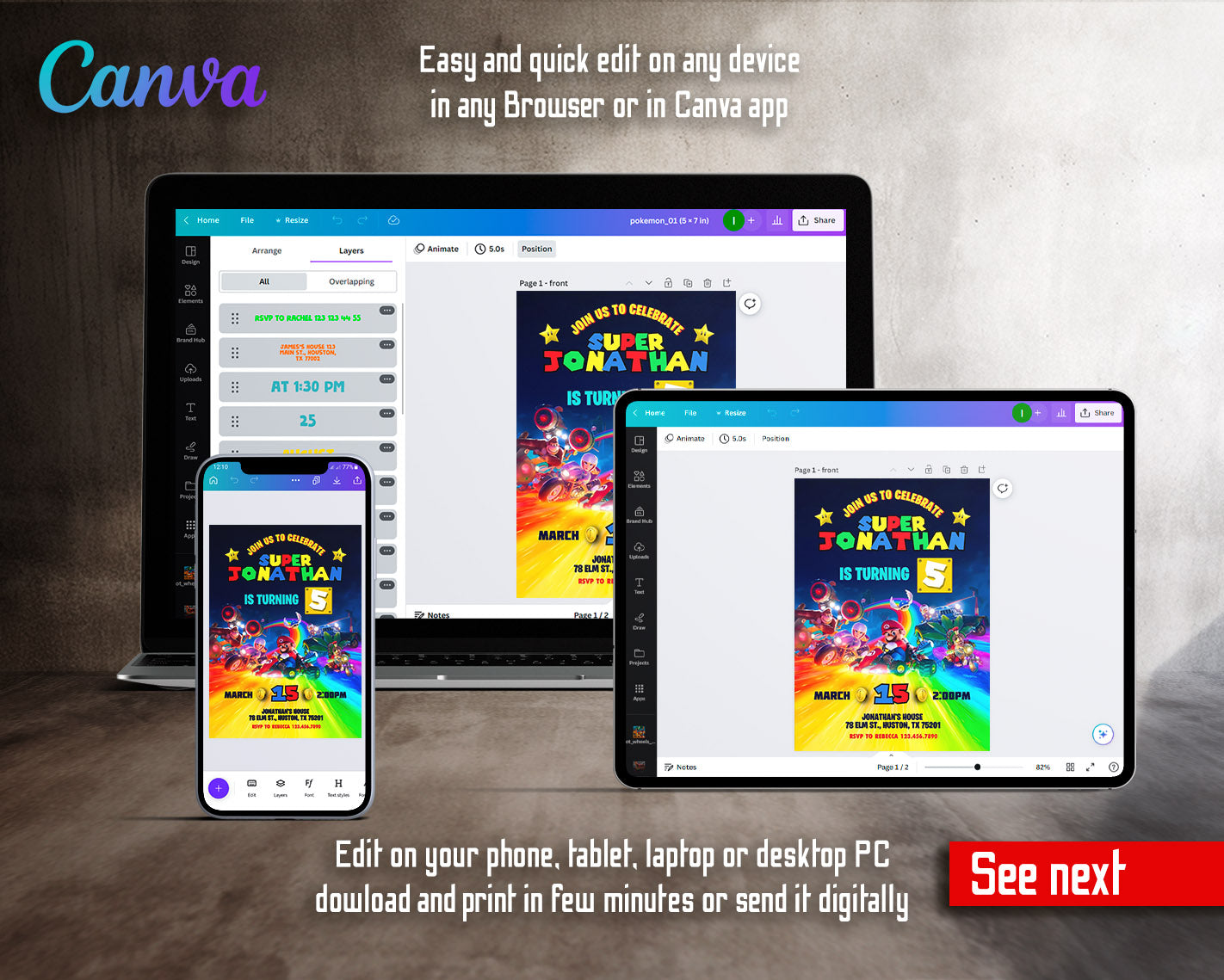 Related Tags: mario invitation, super mario birthday, mario bros invite, luigi invitation, super mario party, digital invite, editable invitation, birthday invitation, printable invitation, invite template, mario bros movie, girl birthday,