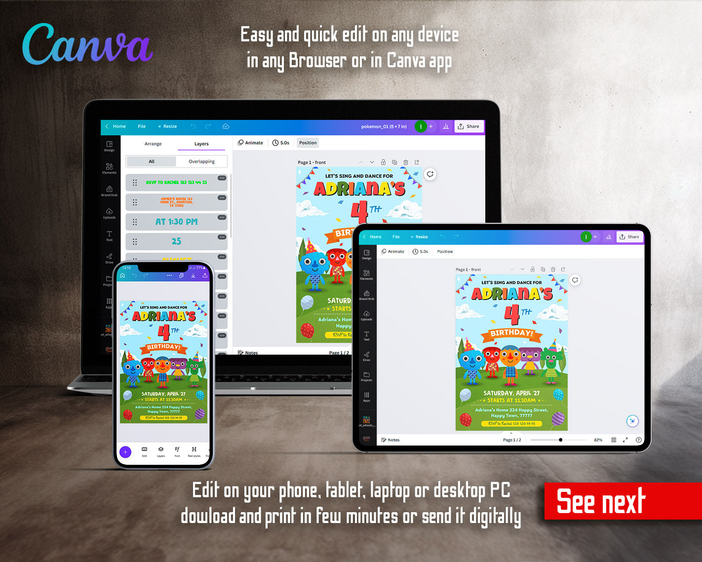 Printable Editable customizable Super Simple Songs birthday party invitation digital template. Instant download invite.