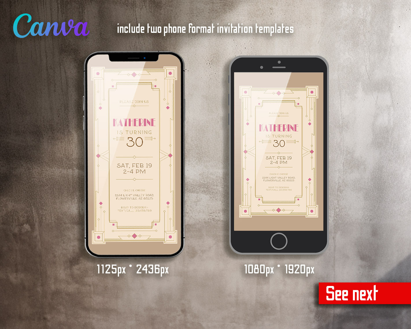Related Tags: gatsby invitation, art deco birthday, roaring twenties, flapper invitation, gatsby party, digital invite, editable invitation, birthday invitation, printable invitation, invite template, 40s birthday , 30s birthday ,