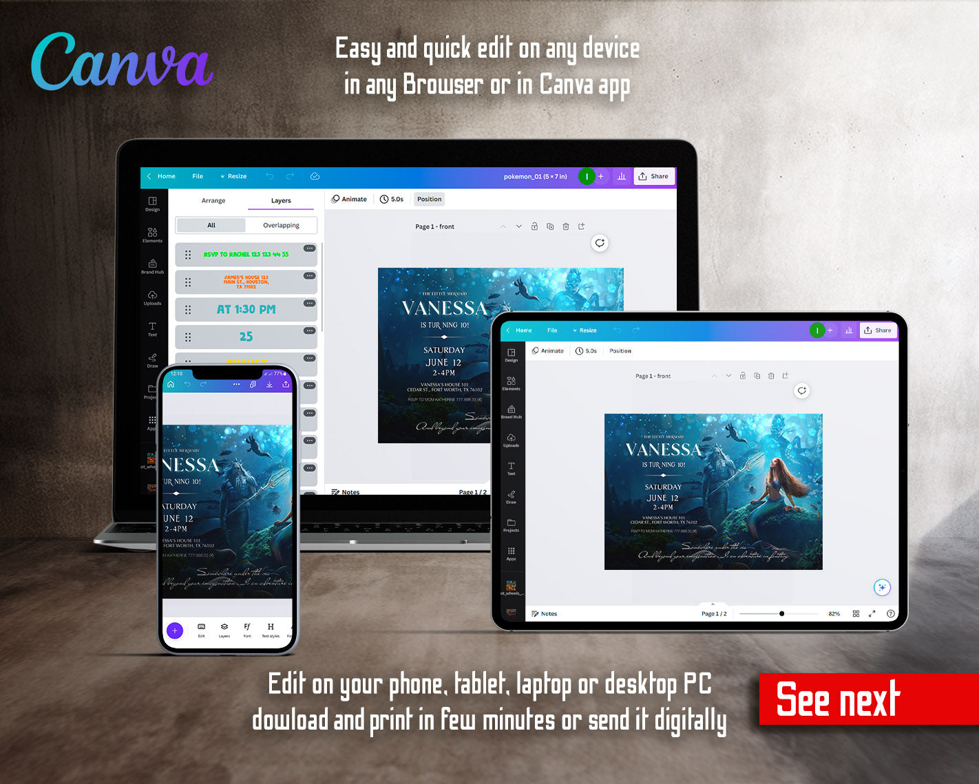 Related Tags: mermaid invitation, mermaid birthday, little mermaid bday, under the sea party, ariel invitation, the little mermaid, editable invitation, birthday invitation, printable invitation, invite template, princess mermaid, girl birthday, ariel birthday