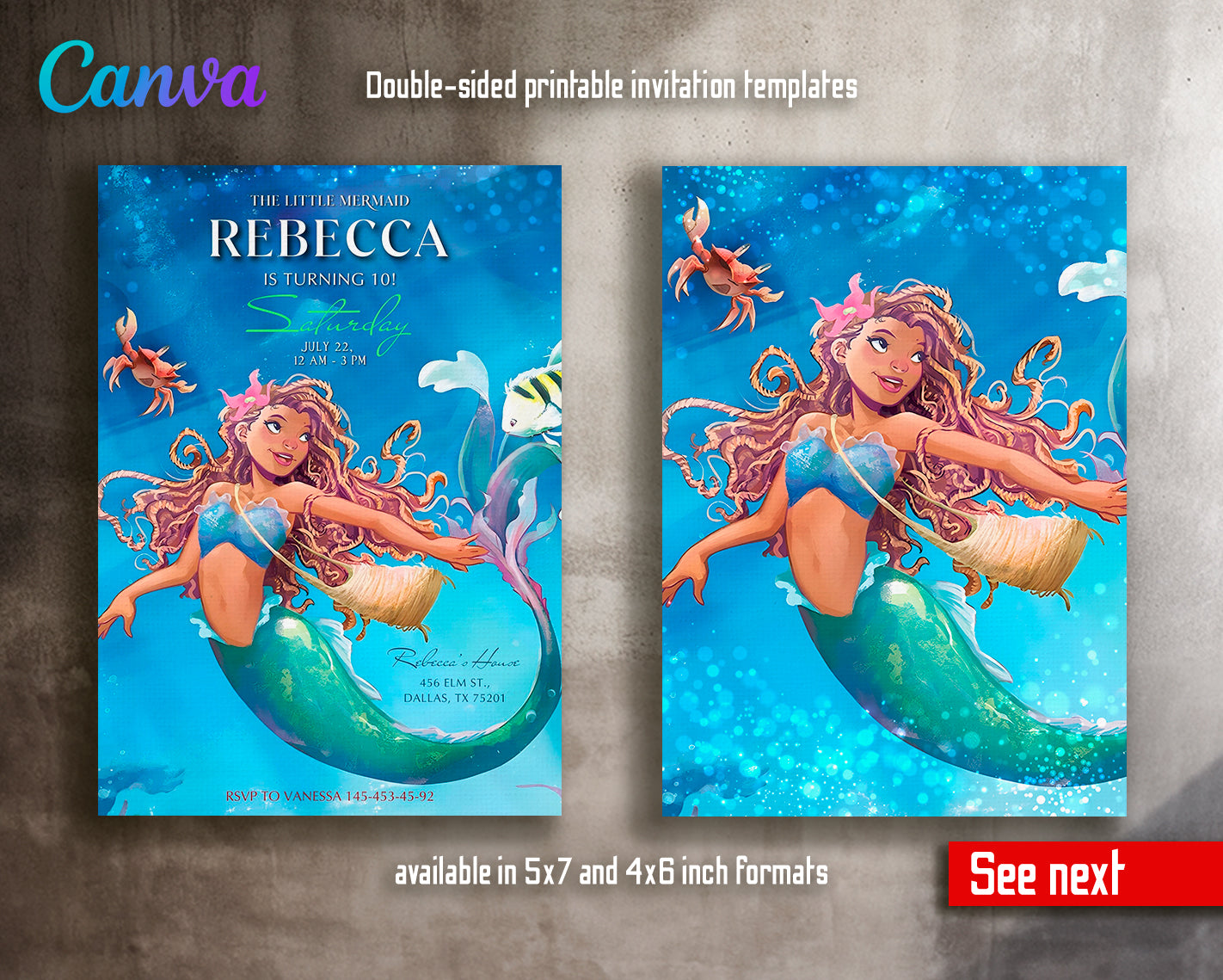 The Little Mermaid Printable invitation, Editable Invitation, Mermaid Birthday Invitation, Princess Ariel Party, Mermaid Party