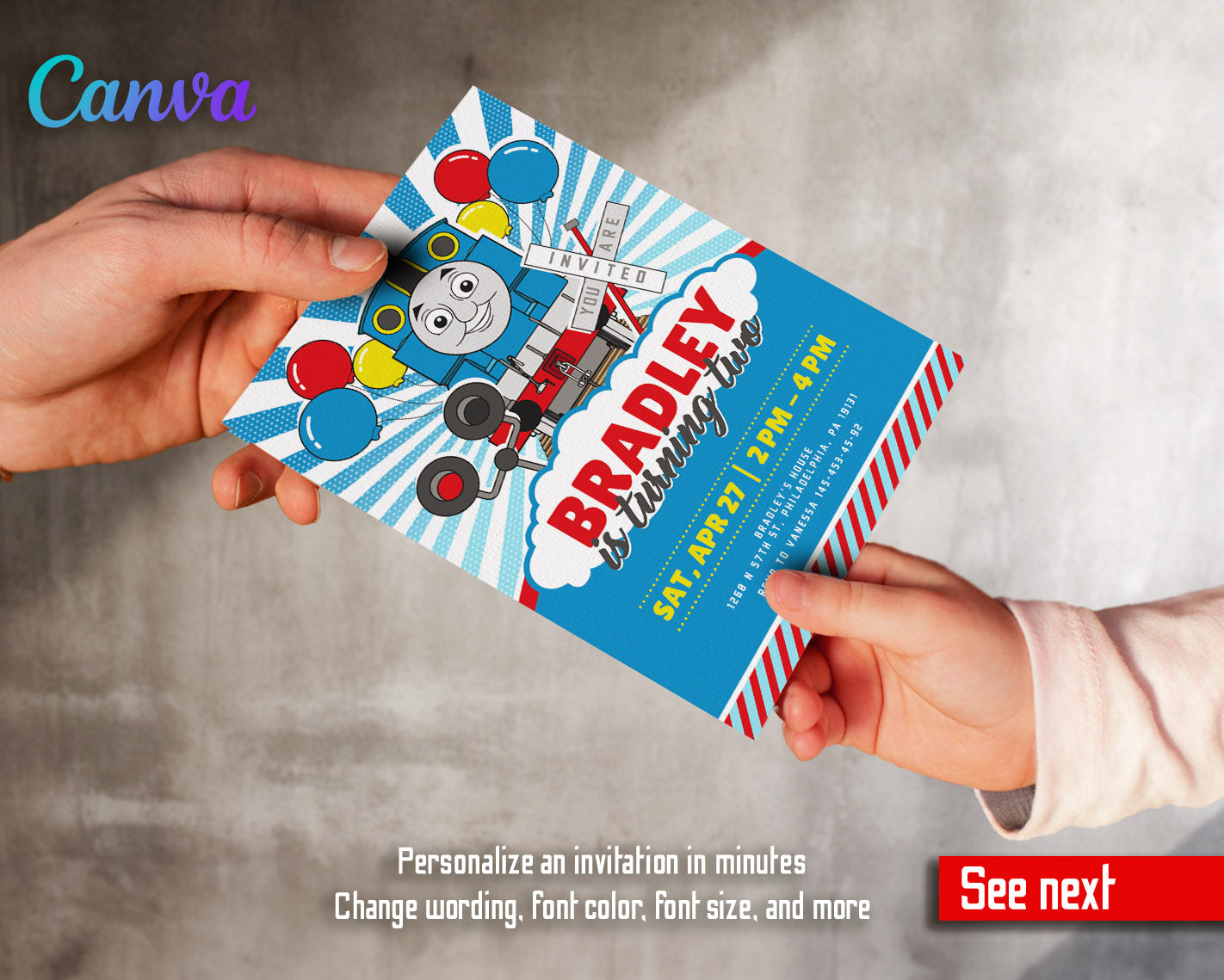 Printable Editable customizable Thomas Train & Friends birthday party invitation digital template. Instant download invite.